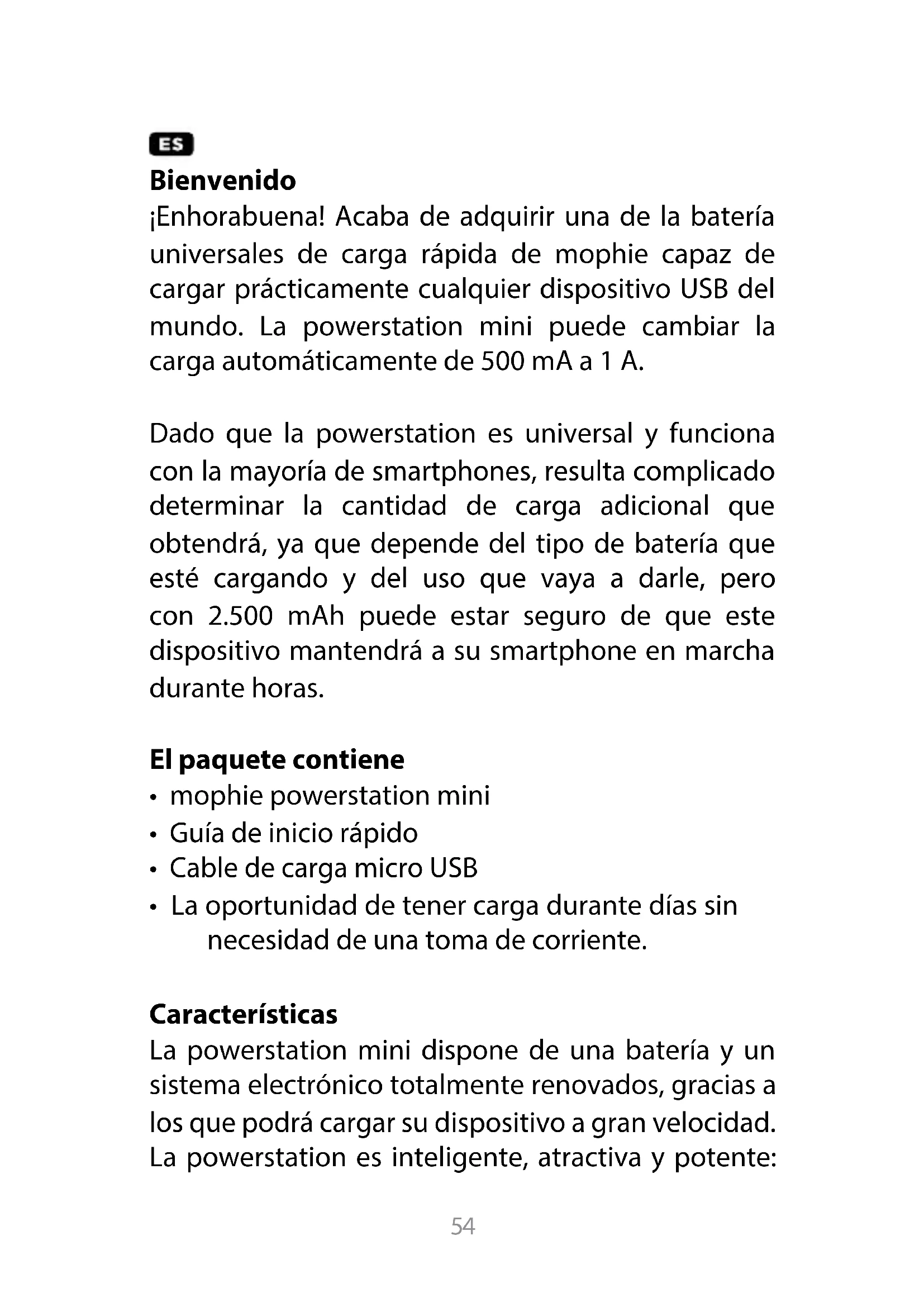 ;Enhorabuena! Acaba de adquirir una de la bateria universales de energia rápida de mophie capaz de hacerships practicamente bajo el的前提下. La powerstation mini pueda携带 la energia automatistically de 500 mA a 1 A.