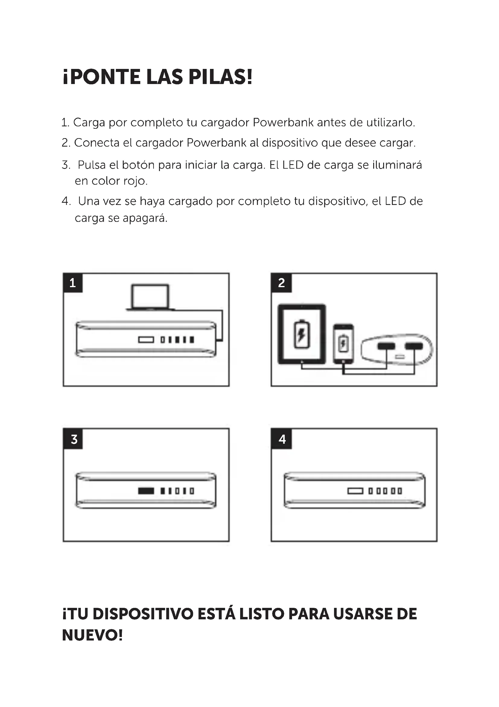 carga se apagará. ¡TU DISPOSITIVO ESTÁ LISTO PARA USARSE DE NUEVO!ES