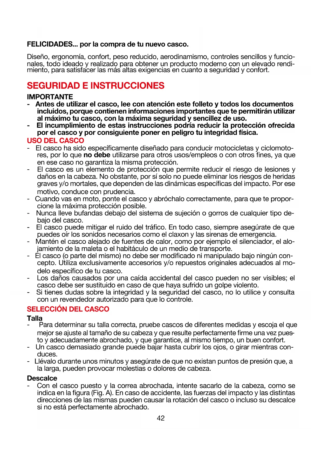 IMPORTANTE - Antes de utilizar el casco, lee con atención este folleto y todos los documentos incluidos, porque contienen informaciones importantes que te permitirán utilizar al máximo tu casco, con la máxima seguridad y sencillez de uso. - El incumplimiento de estas instrucciones podría reducir la protección ofrecida por el casco y por consiguiente poner en peligro tu integridad física.