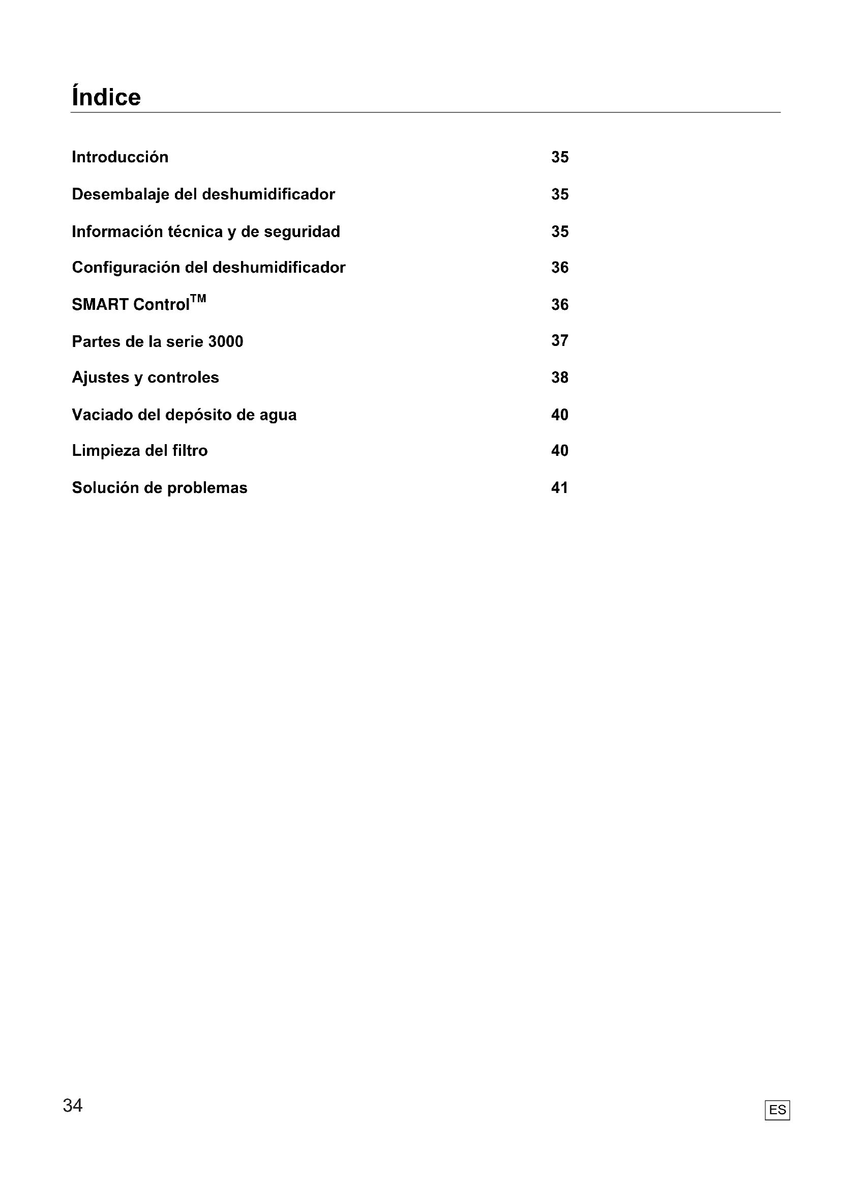 Introducción Desembalaje del deshumidificador Información técnica y de seguridad Configuración del deshumidificador SMART Control