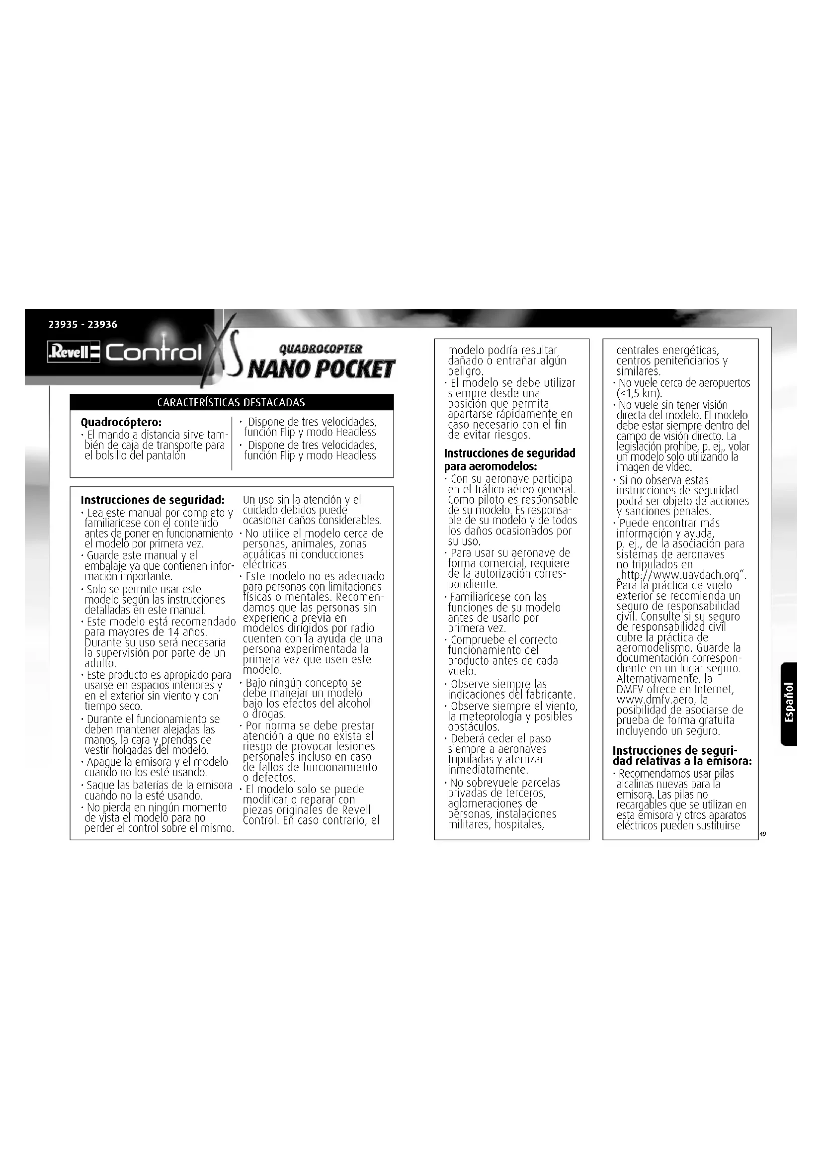 MANUAL DE USUARIO Quatcopter Nano Pocket Revell