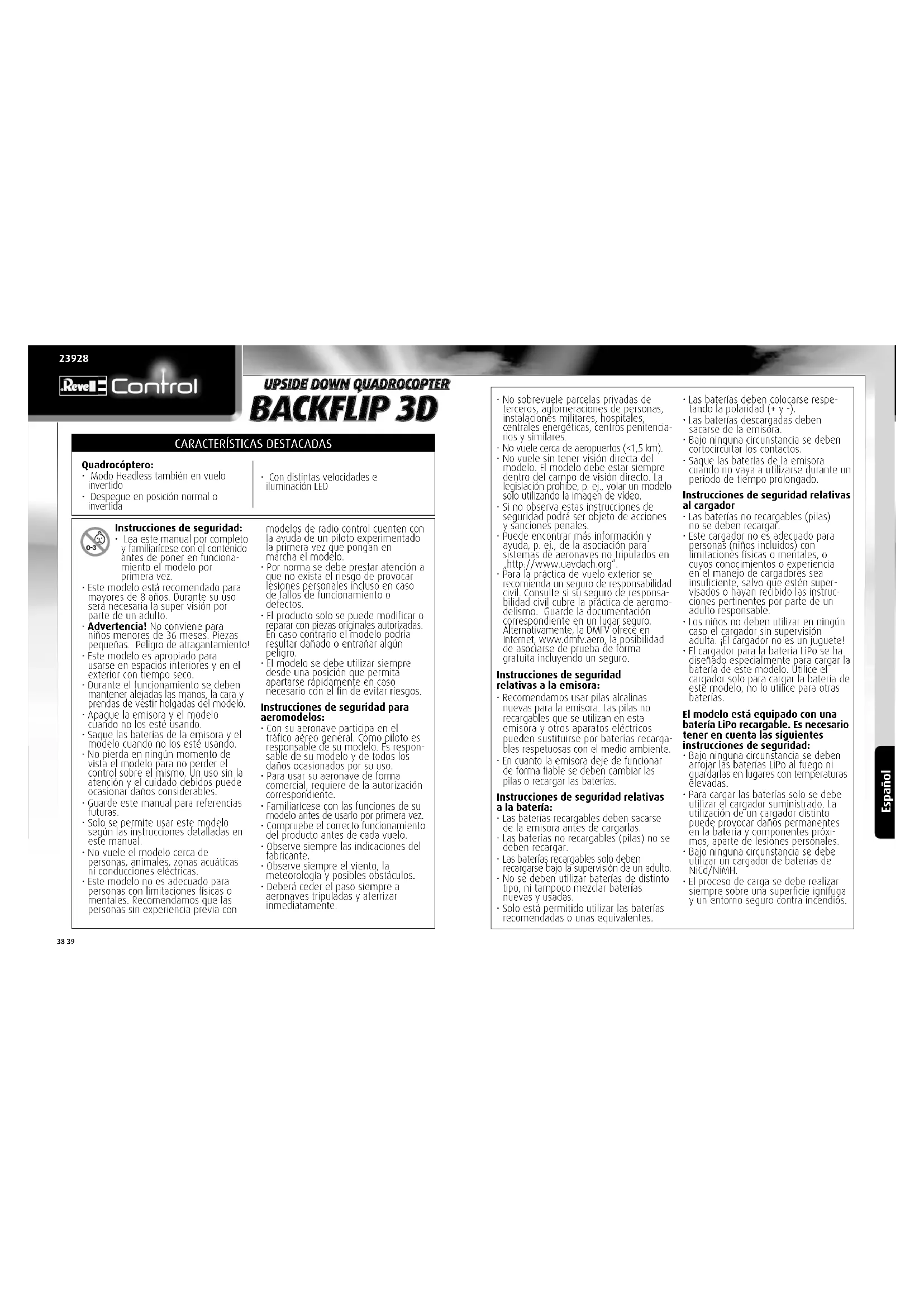 Encuentra gratis el manual del aparato BackFlip3D Revell en formato PDF.