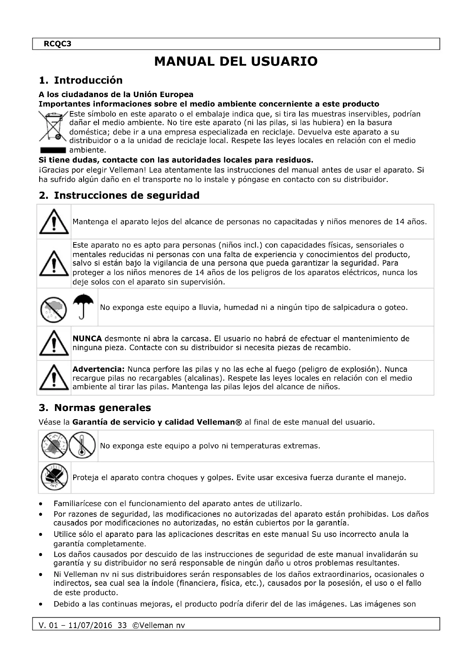 MANUAL DE USUARIO RCQC3 VELLEMAN