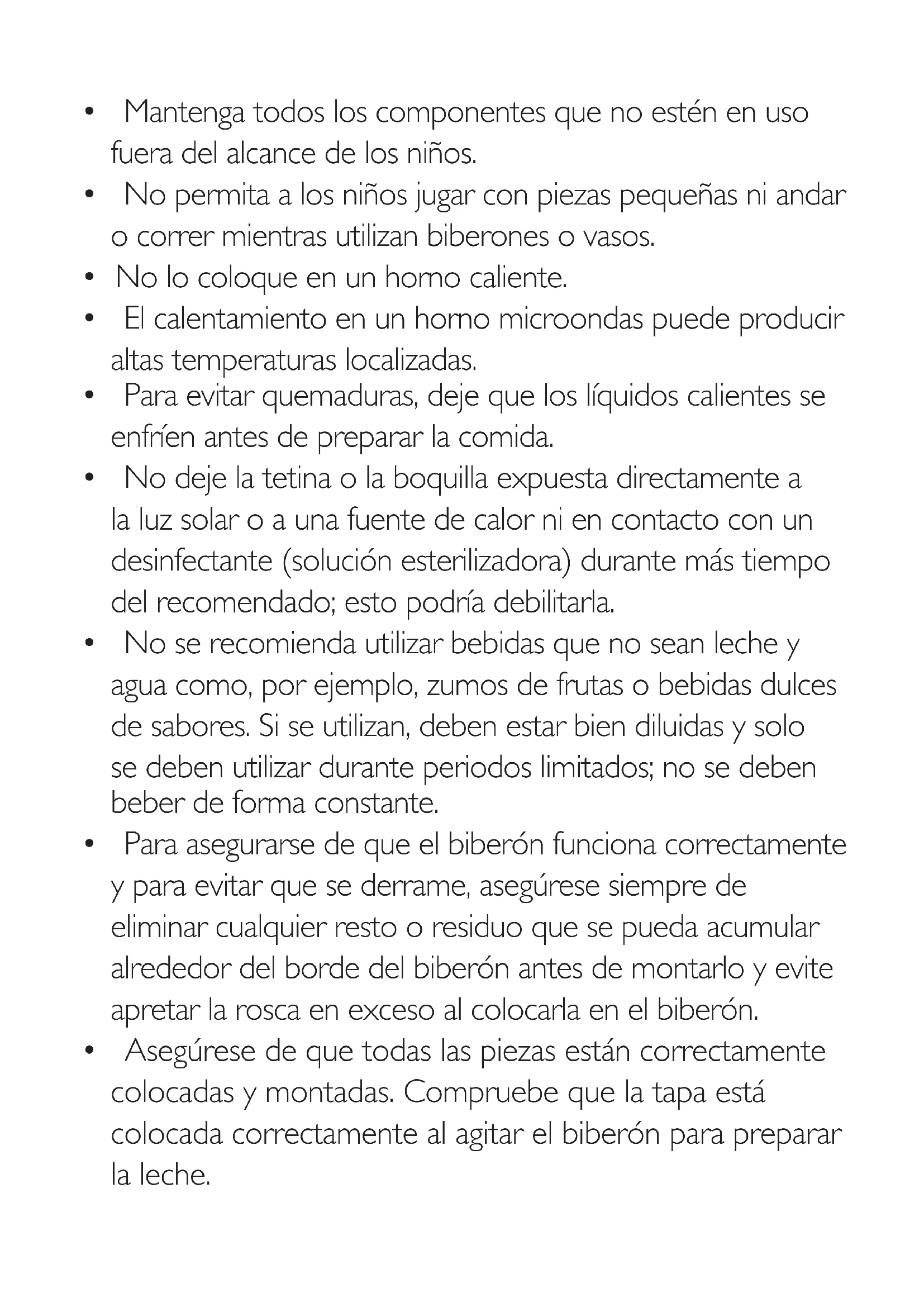 - No ulitice nunca la tetina o la boquilla como chupete.