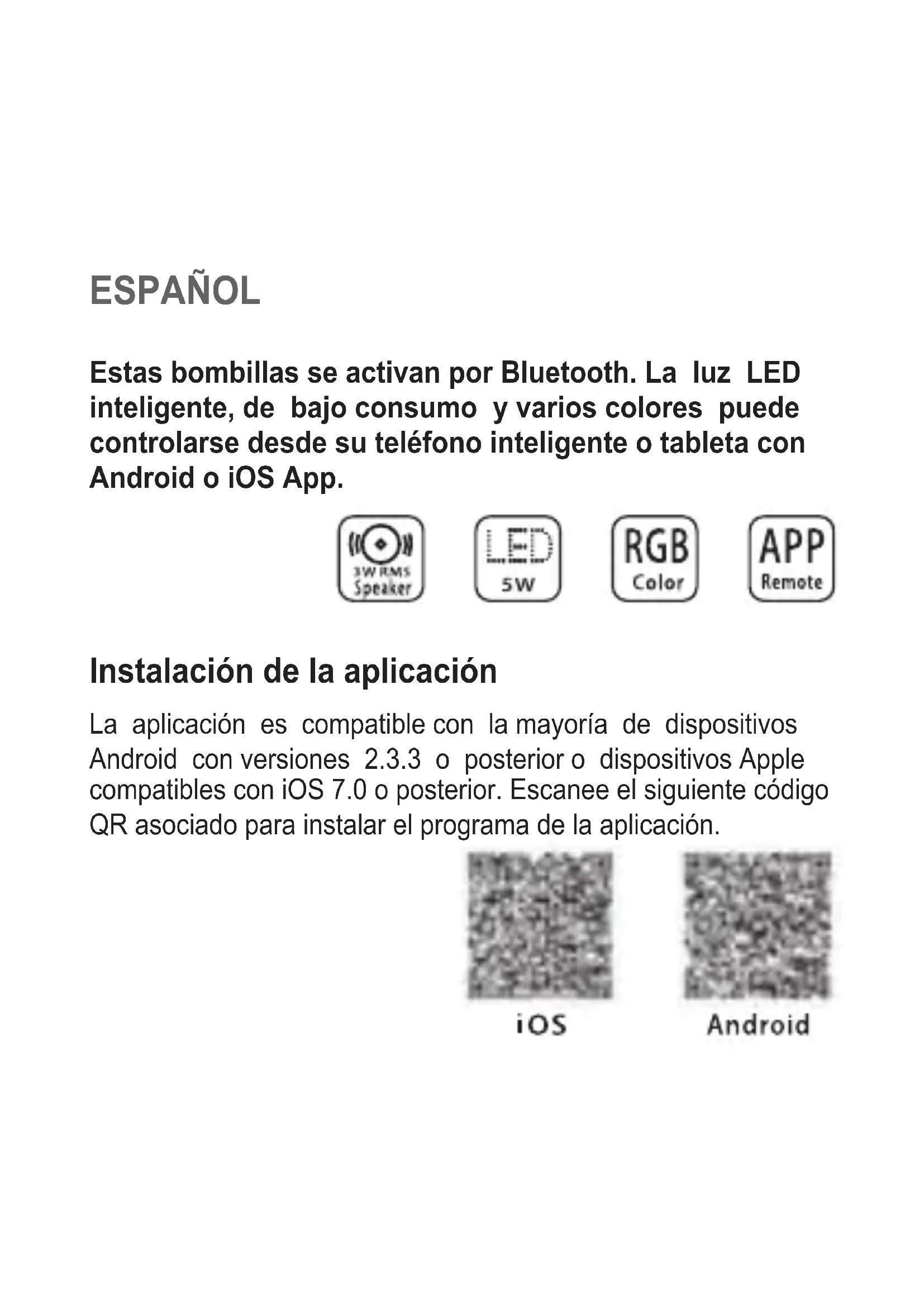 Estas bombillas se activan por Bluetooth. La luz LED inteligente, de bajo consumo y varios colores puede controlarse desde su teléfono inteligente o tableta con Android o iOS App.