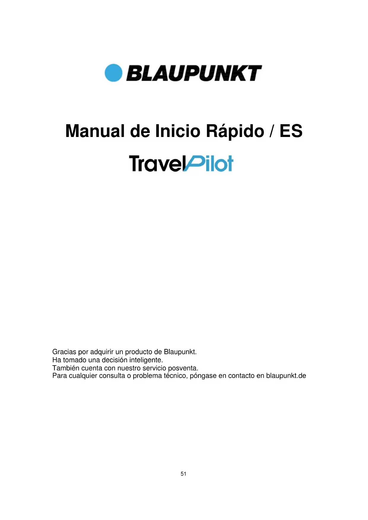 Gracias por adquirir un producto de Blaupunkt. Ha tomado una decisión inteligente. También cuenta con nuestro servicio posventa. Para cualquier consulta o problema técnico, póngase en contacto en blaupunkt.de52 Caro Cliente, Gracias por el egir el sistema de navegación de Blaupunkt.