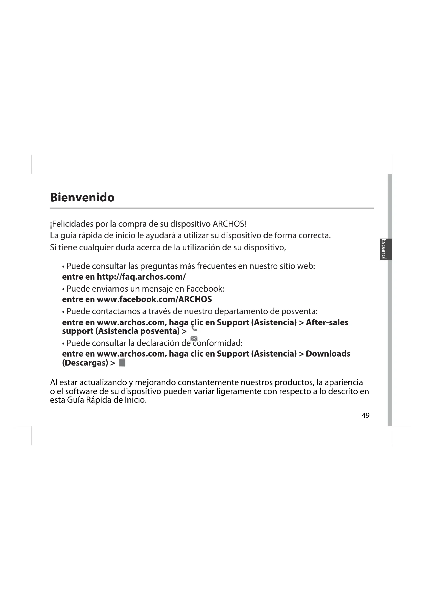 - Puede enviarnos un mensaje en Facebook: entre en www.facebook.com/ARCHOS