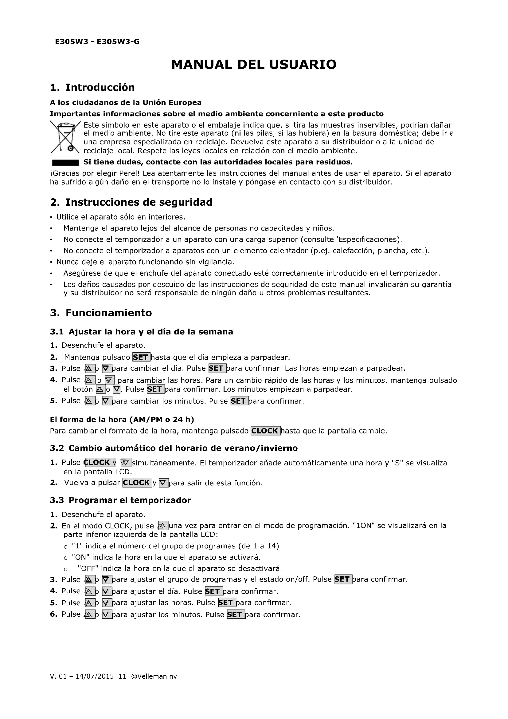 Encuentra gratis el manual del aparato E305W3G Perel en formato PDF.