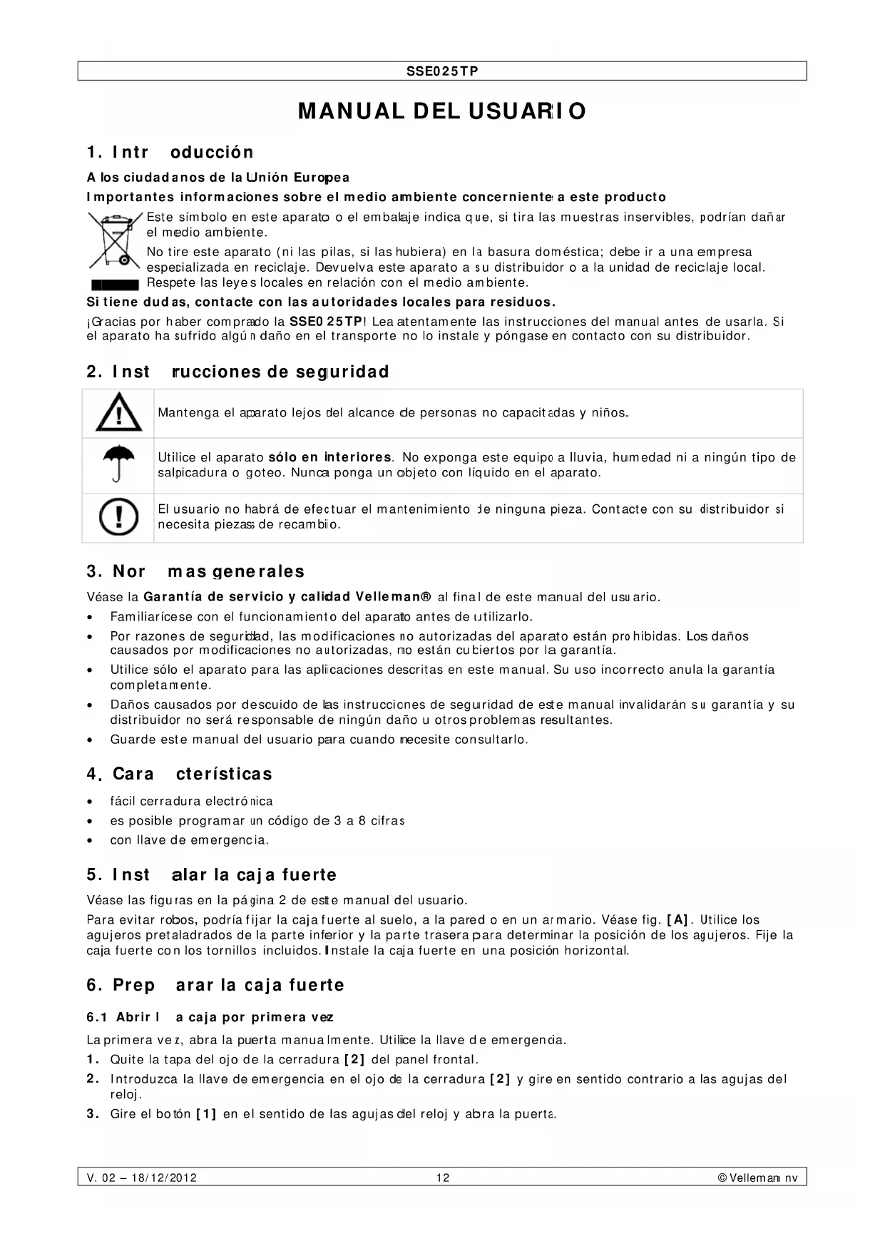 Utilice este aparato solo con los accesorios originales. Velleman NV no sera responsable de daños ni lesiones causados por un uso (indebido) de este aparato.