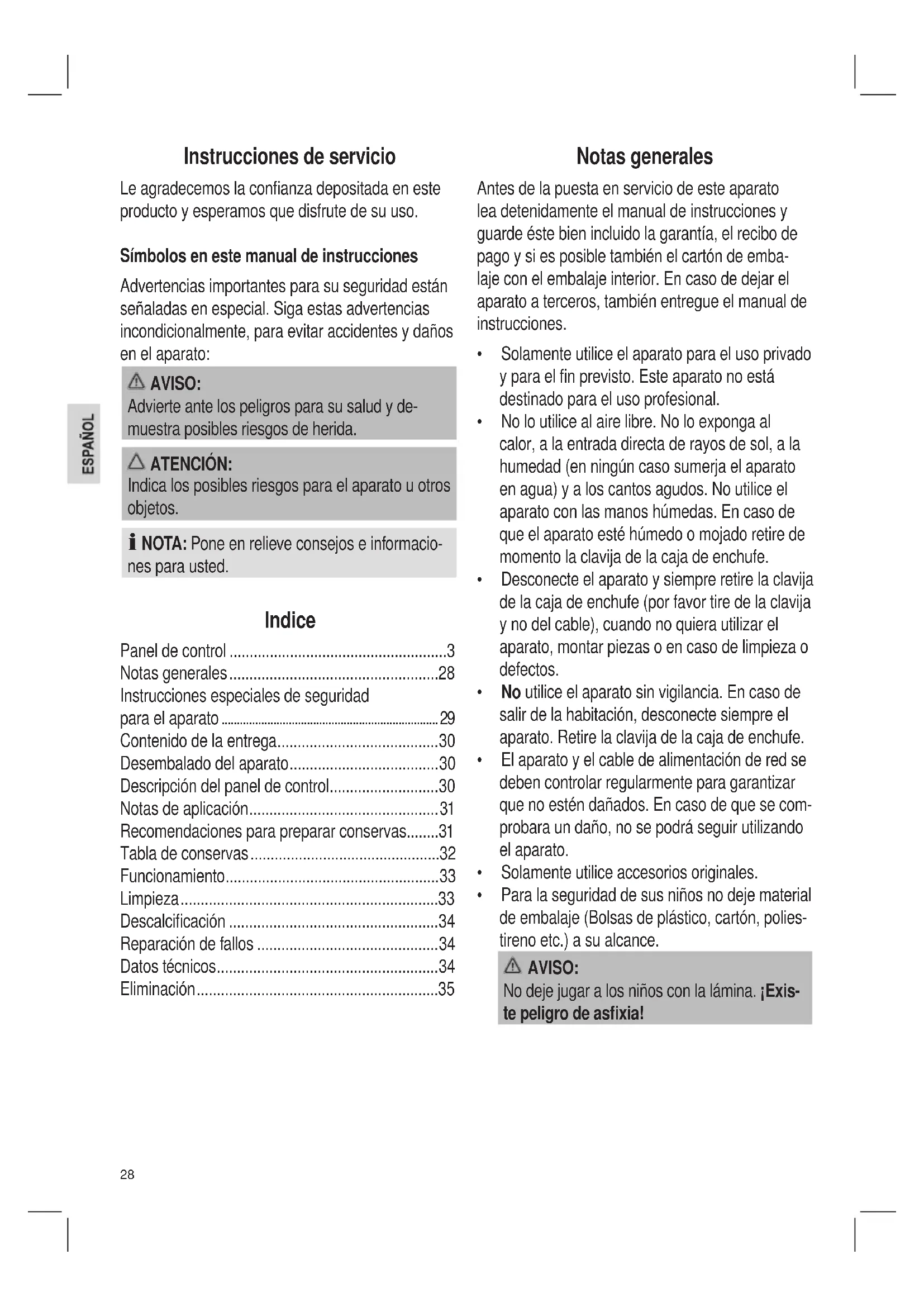 - Nosumerjaelpreparadordeconservasenaguaniotroslíquidos.34 ATENCIÓN: