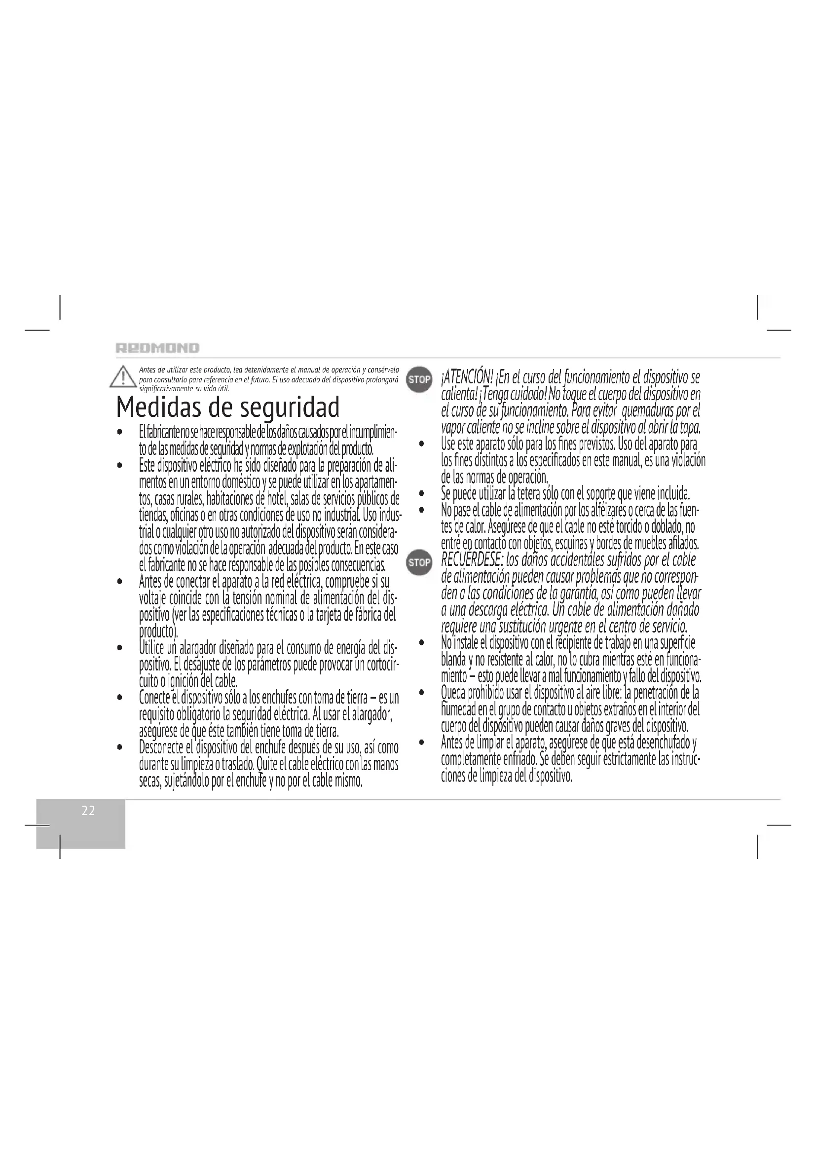 MANUAL DE USUARIO RKG127E Redmond