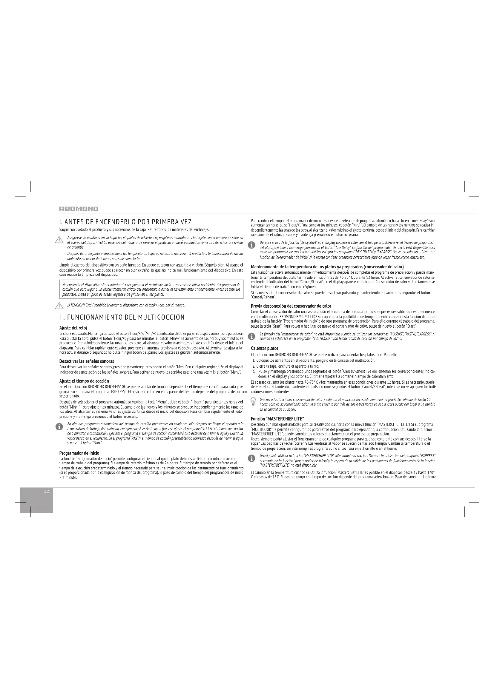 Encuentra gratis el manual del aparato RMCM4510E Redmond en formato PDF.