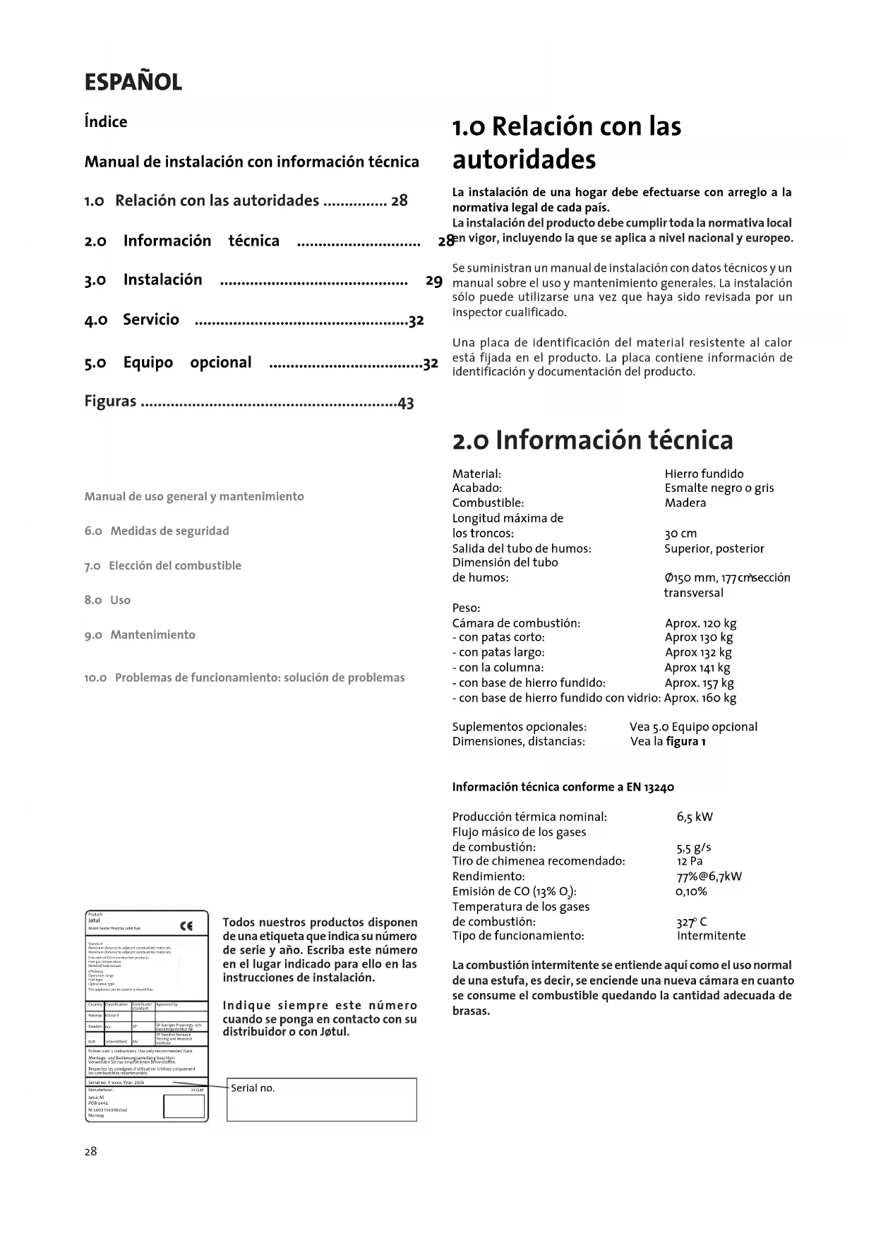 Todoos{nuestros productos disponen de una etiqueta que indica su numero de série y año. Escribe este número en el lugar indicado paraarlo en las instrucciones de instalacion.