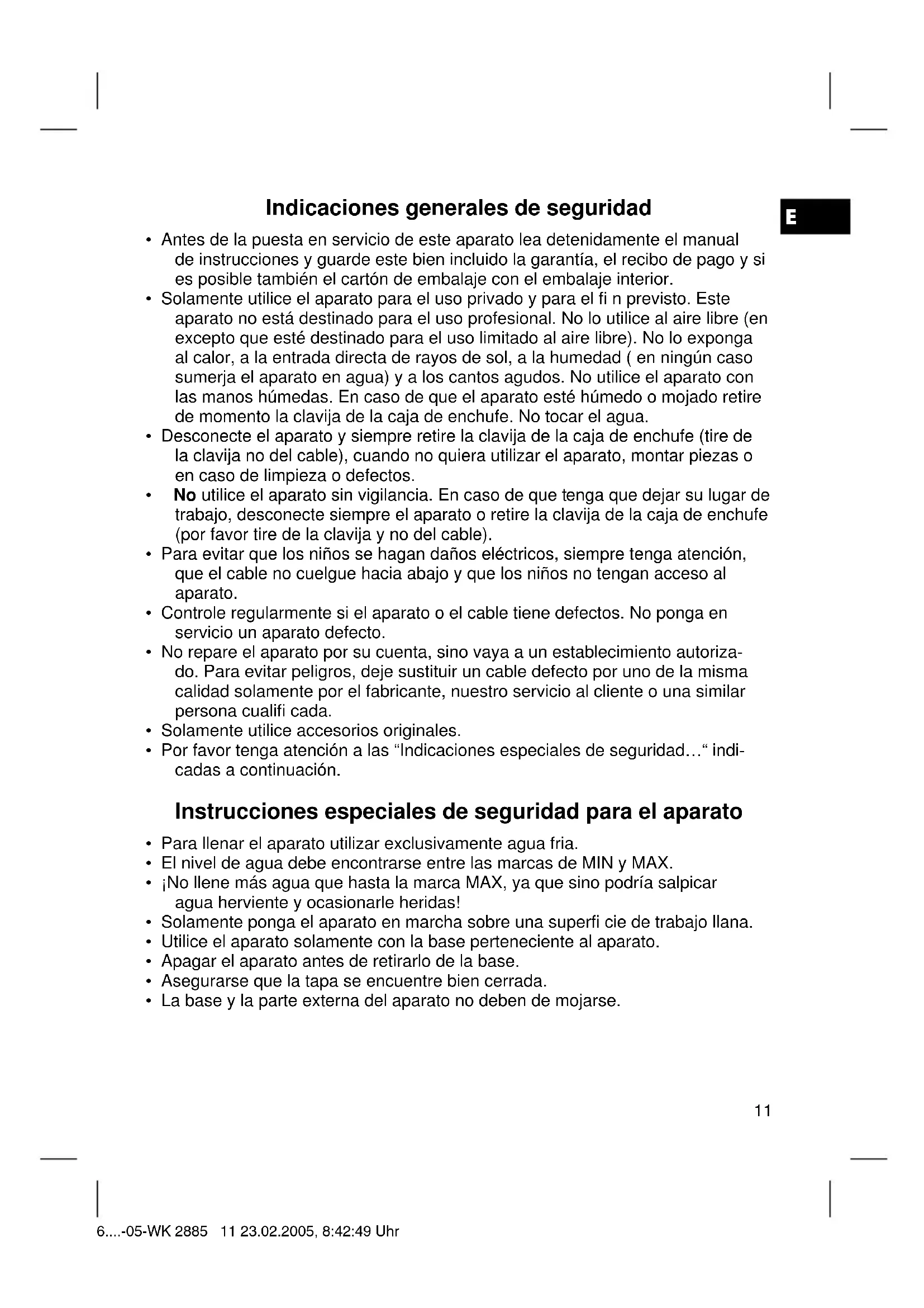 - Favor no utilizar vinagre, sino agentes desenleifi cantes comerciales a basa da ácido citrico. Desifi car según la recomendación. 6....-05-WK 2885 12 23.02.2005, 8:42:49 UhrE