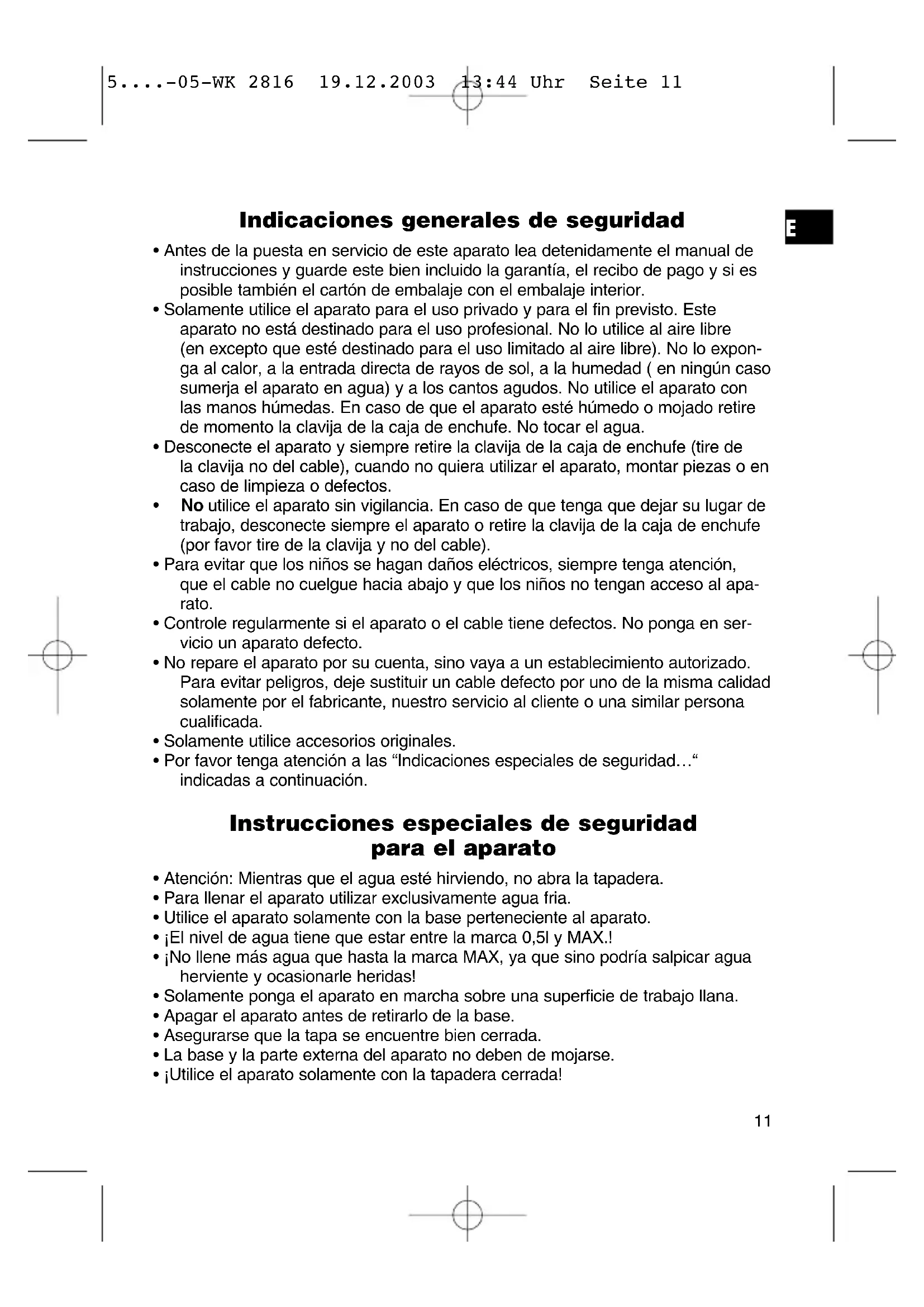 5....-05-WK 2816 19.12.2003 13:44 Uhr Seite 11Puesta en operación del aparato Antes de su uso, hervir 2 veces con agua limpia/fresca y sin aditivos. Por favor no use este agua.