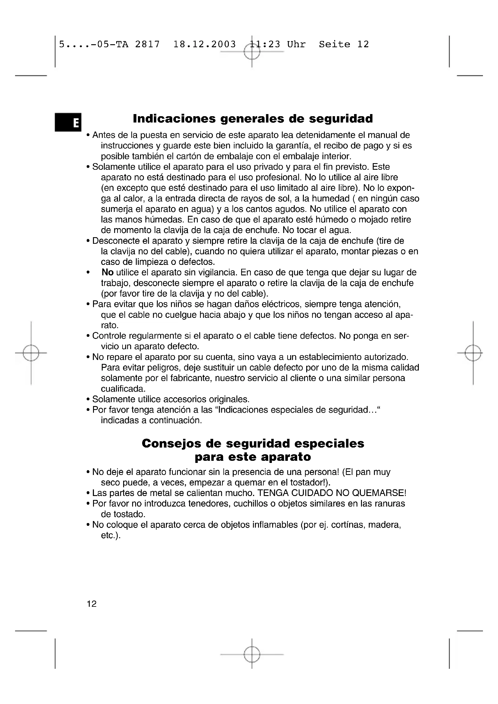 - No deja el aparato funciona sin la presencia de una persona! (El pan muy seco puede, a veces,ooterar a quemar en el tostador!).