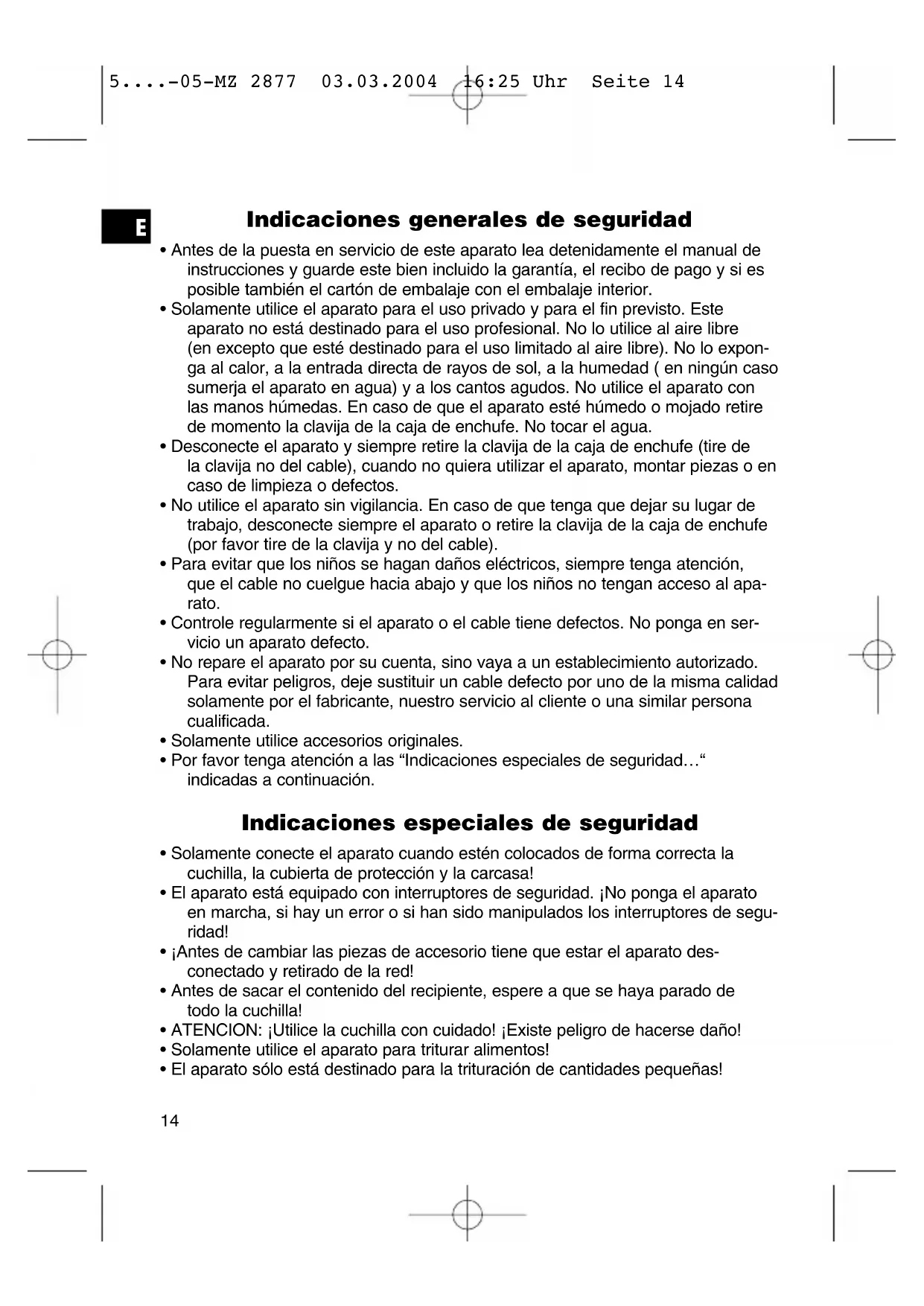 5....-05-MZ 2877 03.03.2004 16:25 Uhr Seite 14• Por eso sólo introduzca en el recipiente las cantidades máximas que estén indicadas en la tabla!