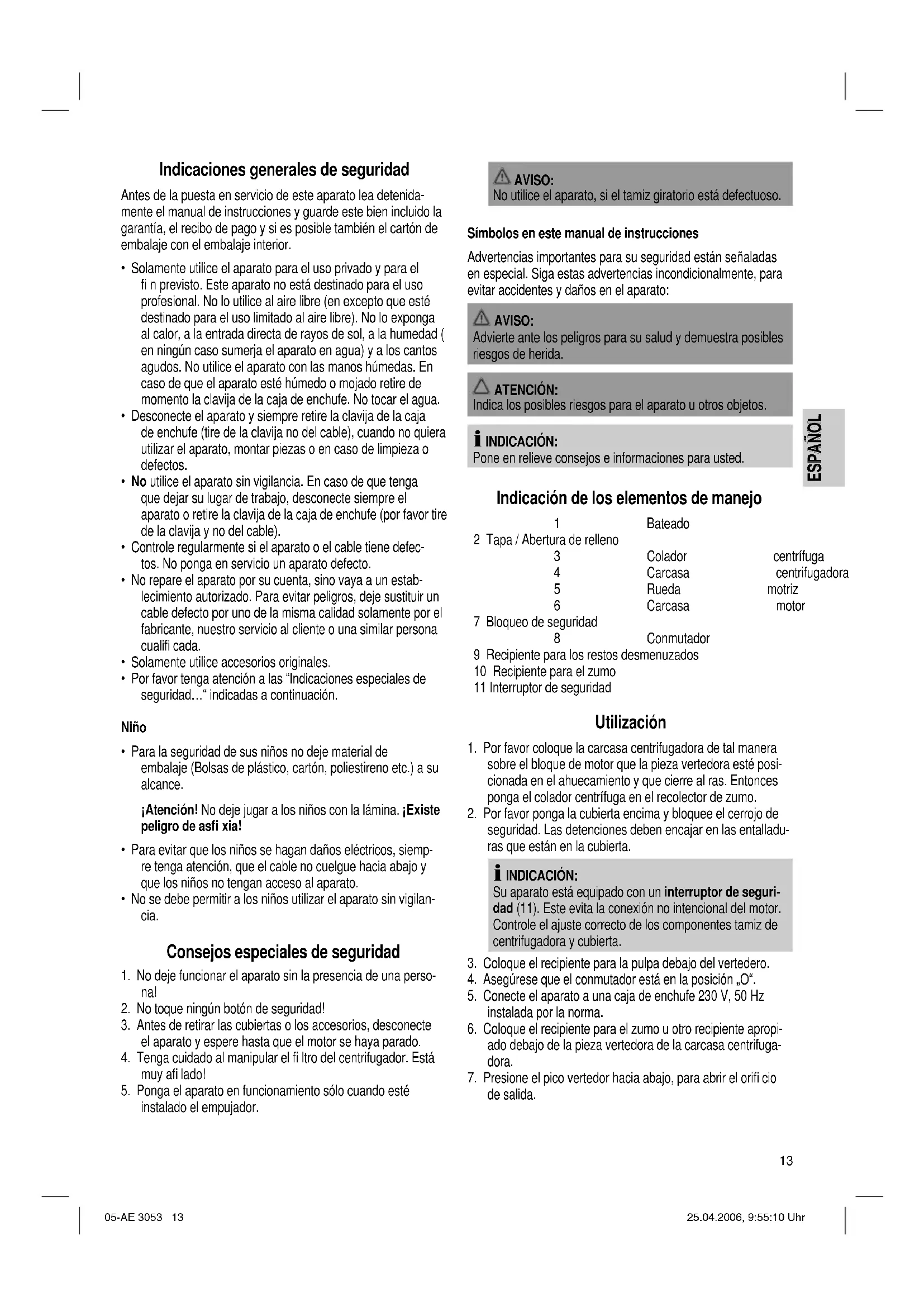 AE 3053 - Extractor de jugo CLATRONIC - Manual de uso y guía de instrucciones gratis