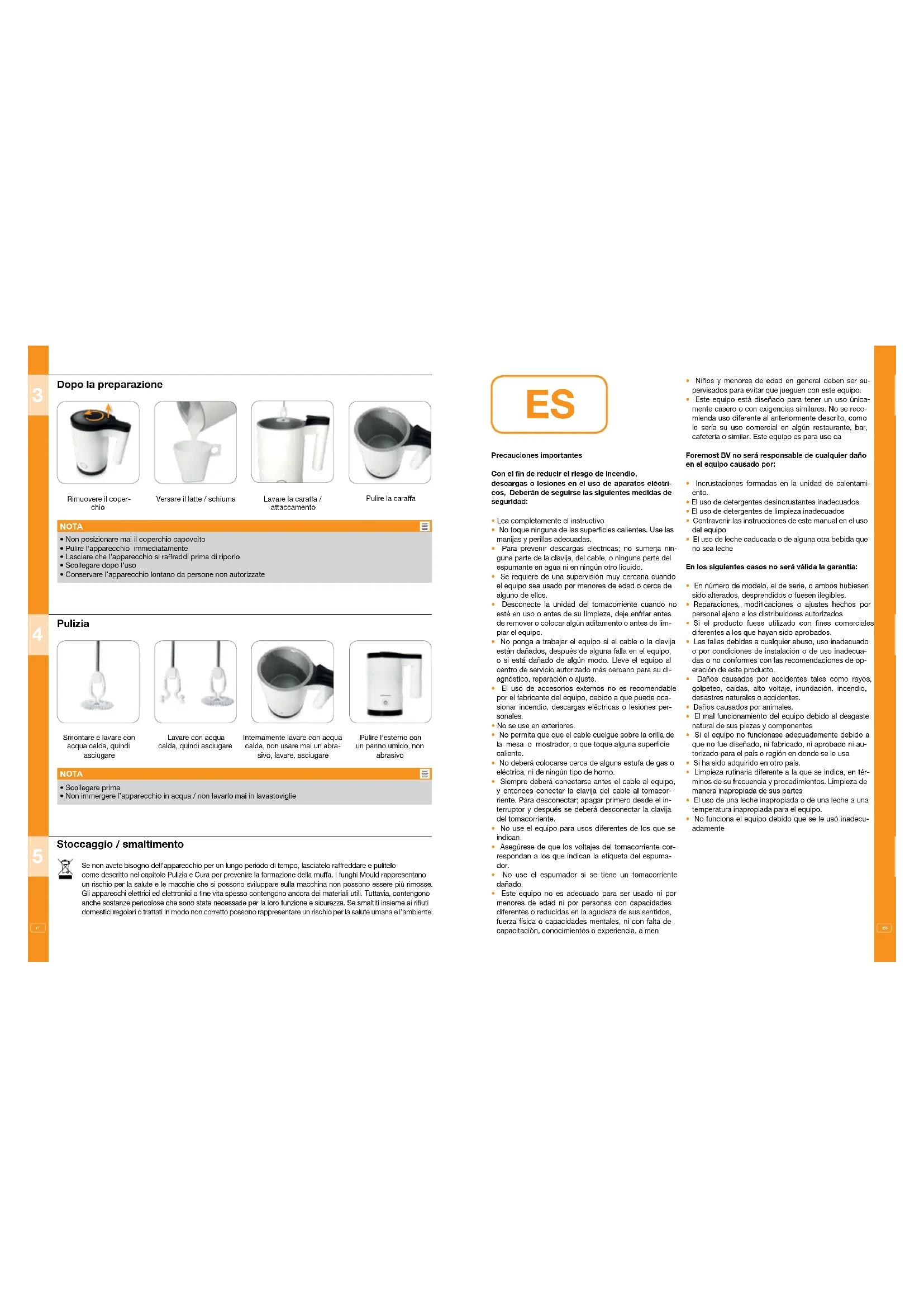Llene con leche Respete el nivel maximo Colque la tapa Inicia la preparacion