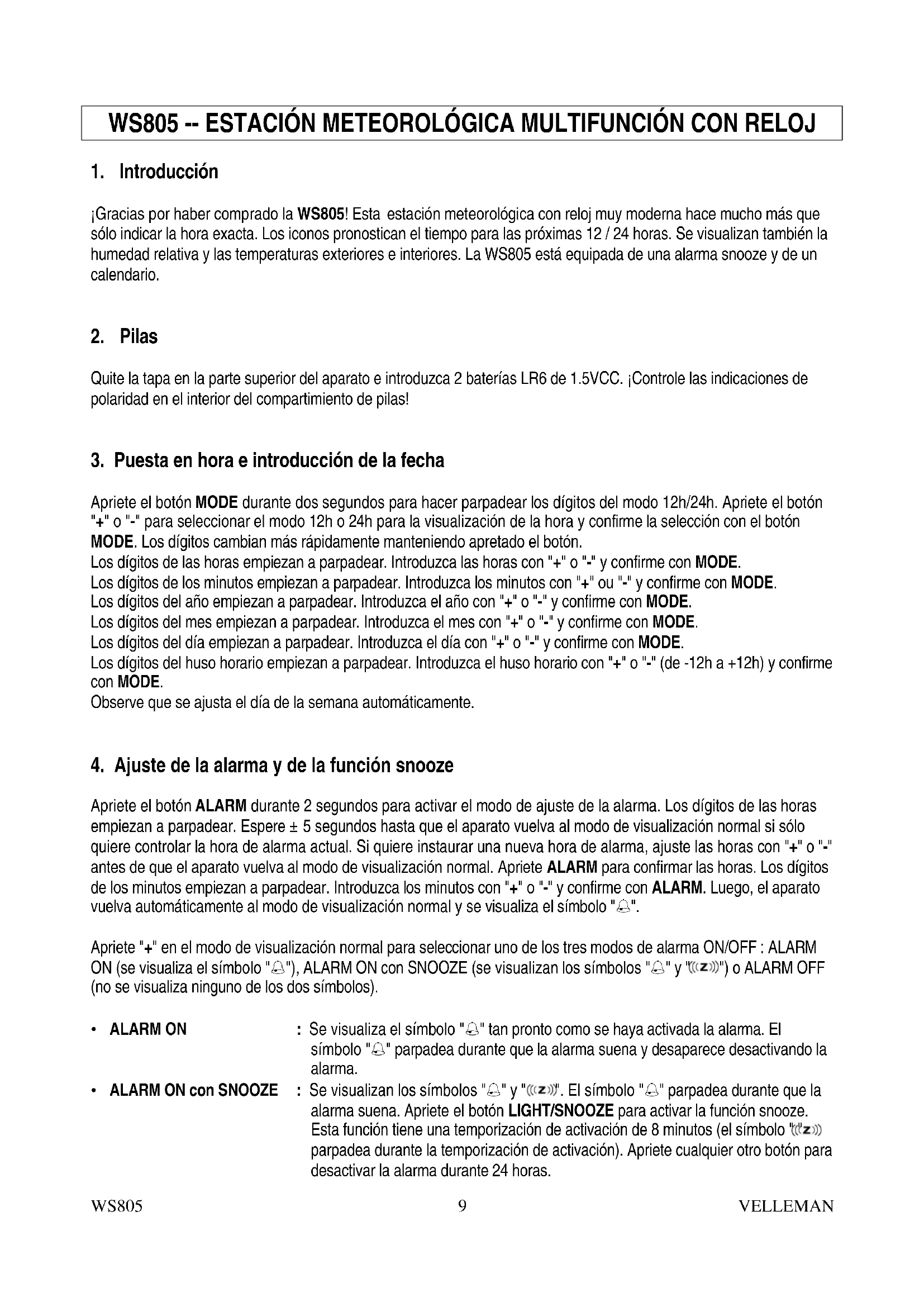 MANUAL DE USUARIO WS805 VELLEMAN