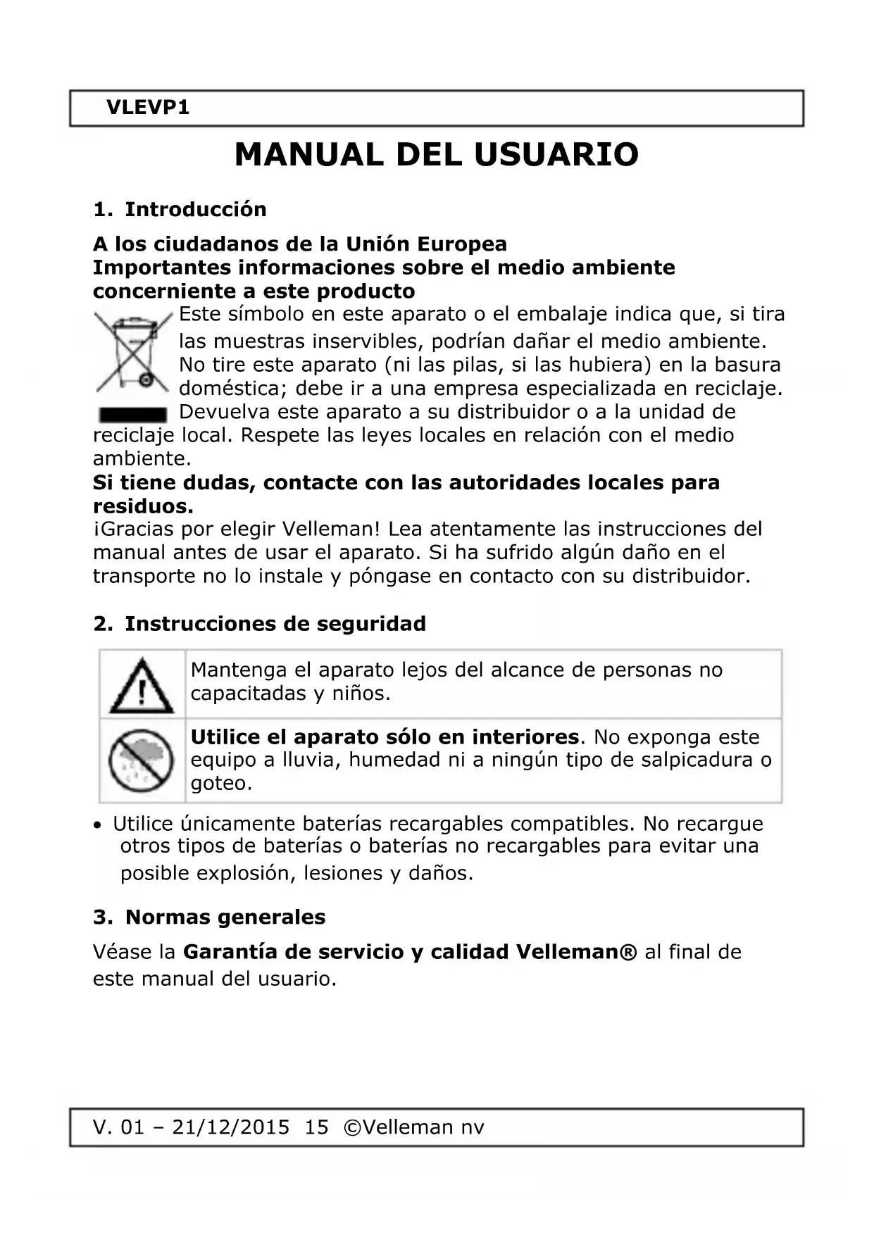 MANUAL DE USUARIO VLEVP1 VELLEMAN
