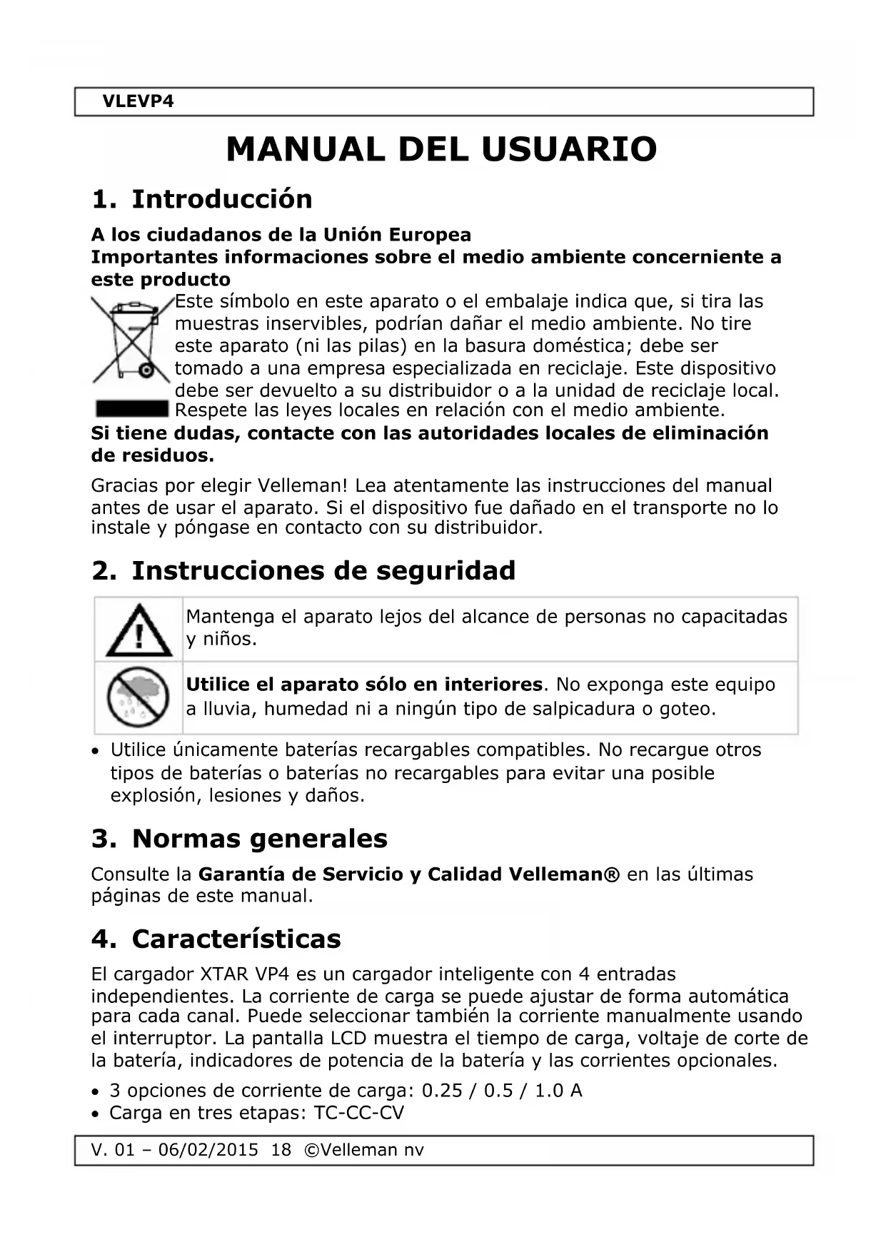 VLEVP4 - Cargador de batería VELLEMAN - Manual de uso y guía de instrucciones gratis
