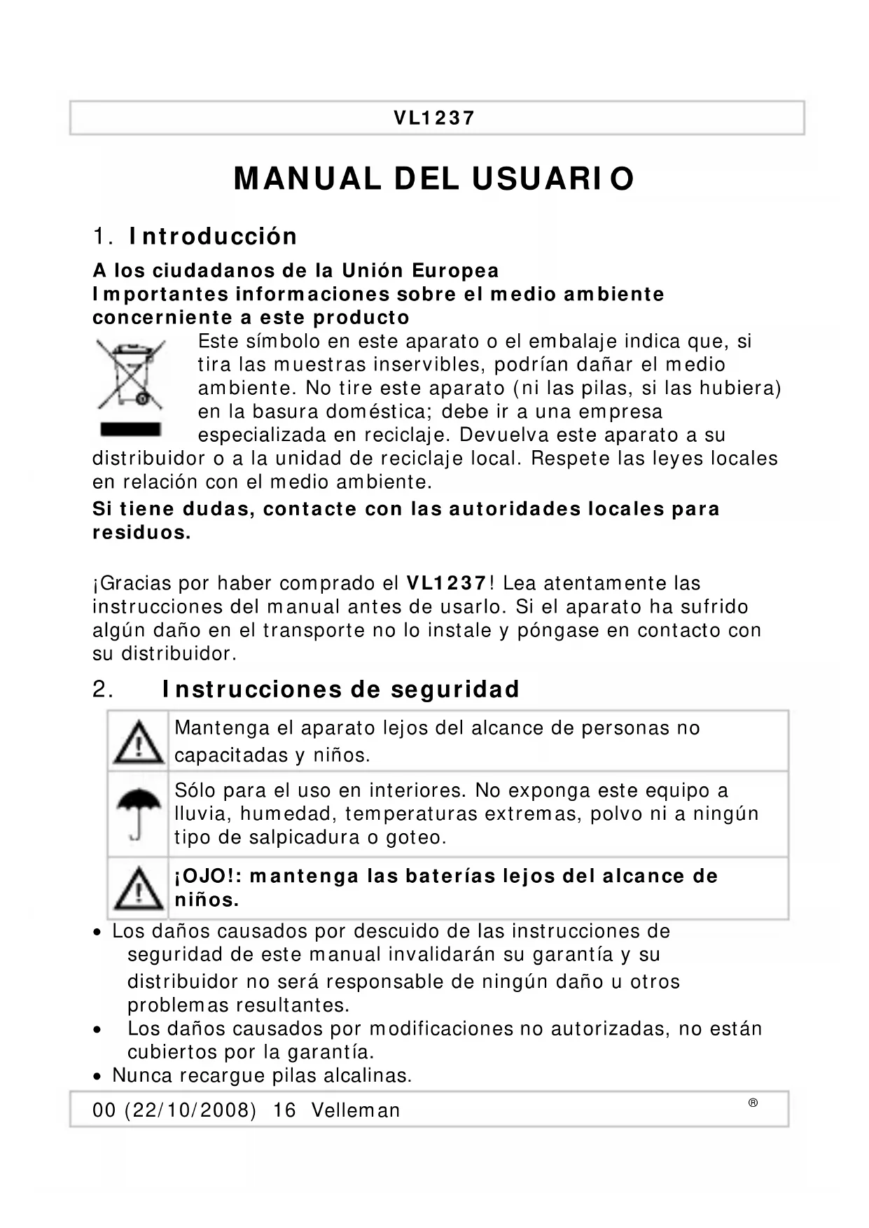 MANUAL DE USUARIO VL1237 VELLEMAN