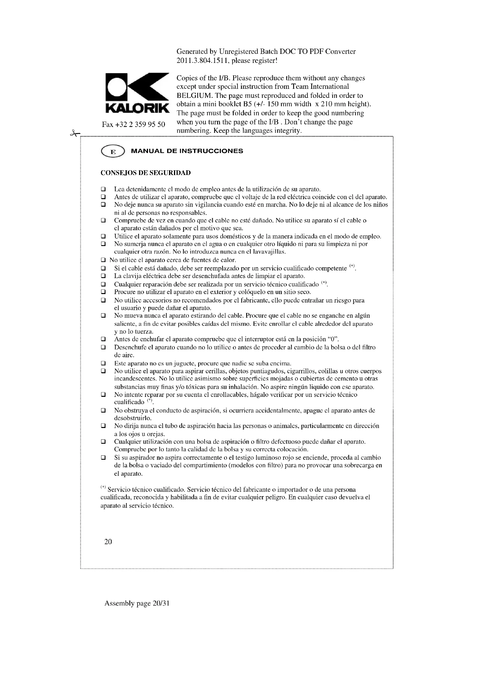 KA ASP 14 - Aspiradora KALORIK - Manual de uso y guía de instrucciones gratis
