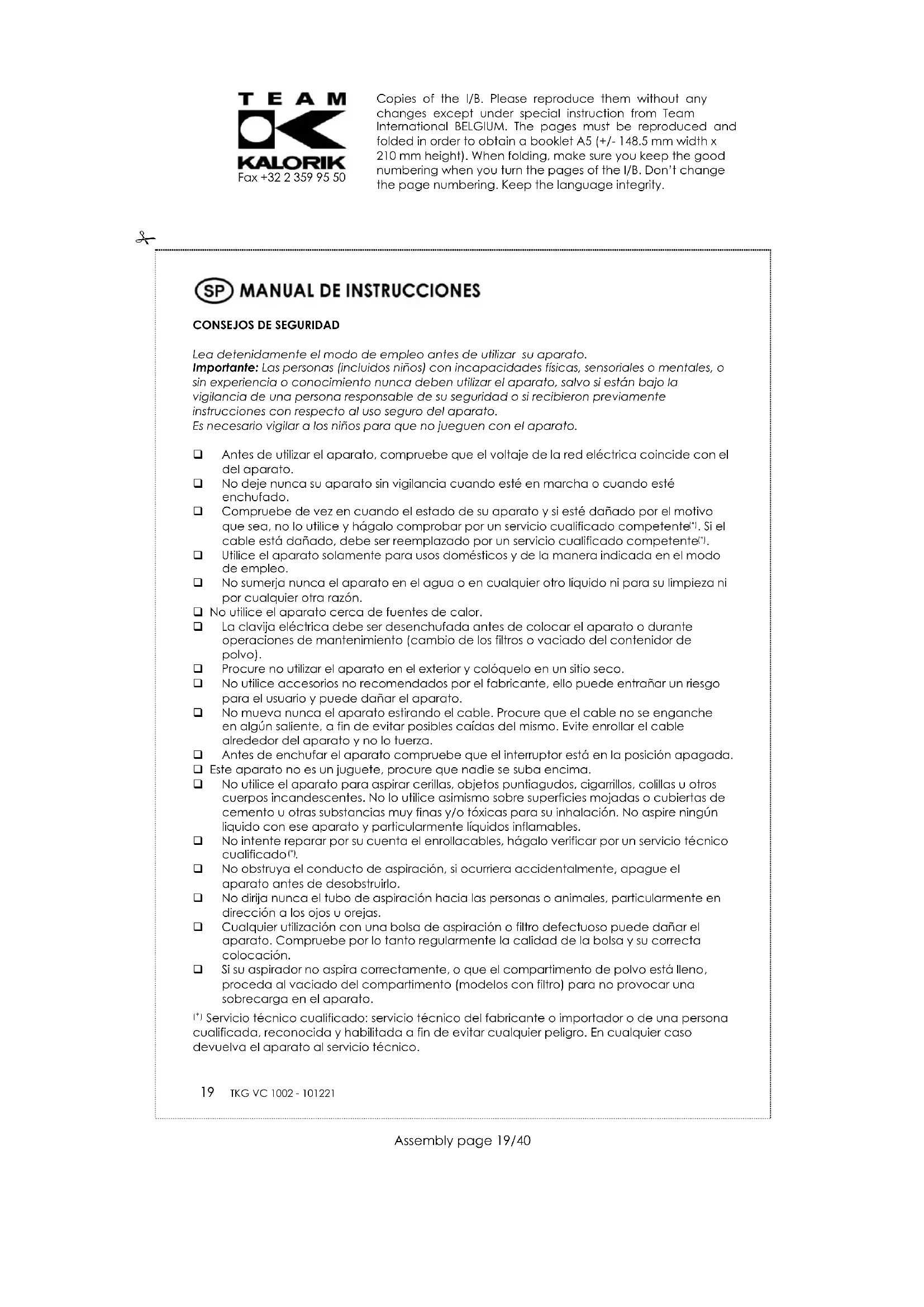 MANUAL DE USUARIO TKG VC 1002 KALORIK