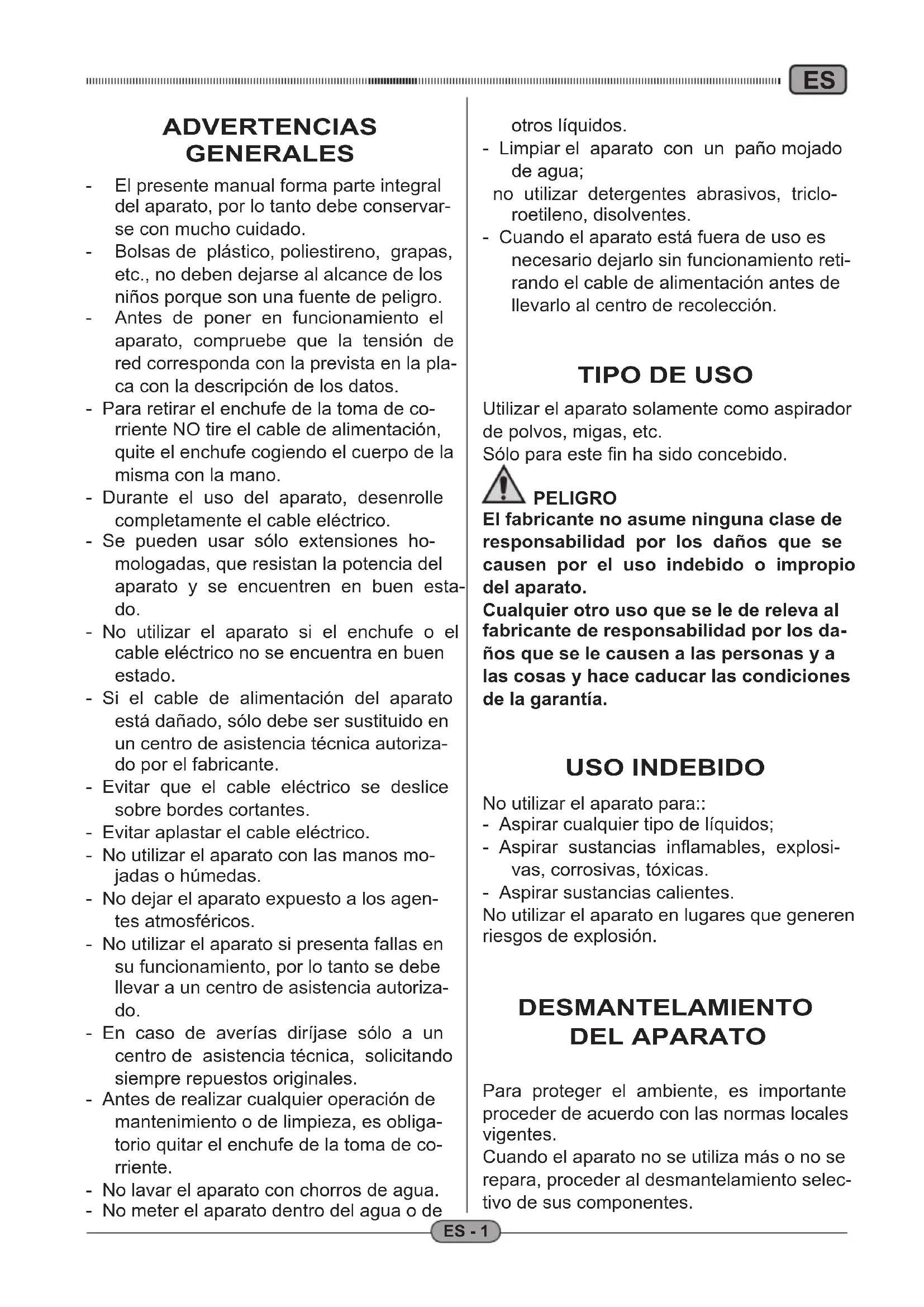 - Antes deponer en functionamento el aparato,compruebe que la tension de red corresponda con la prevista en la placacanla descripciónde los datos.