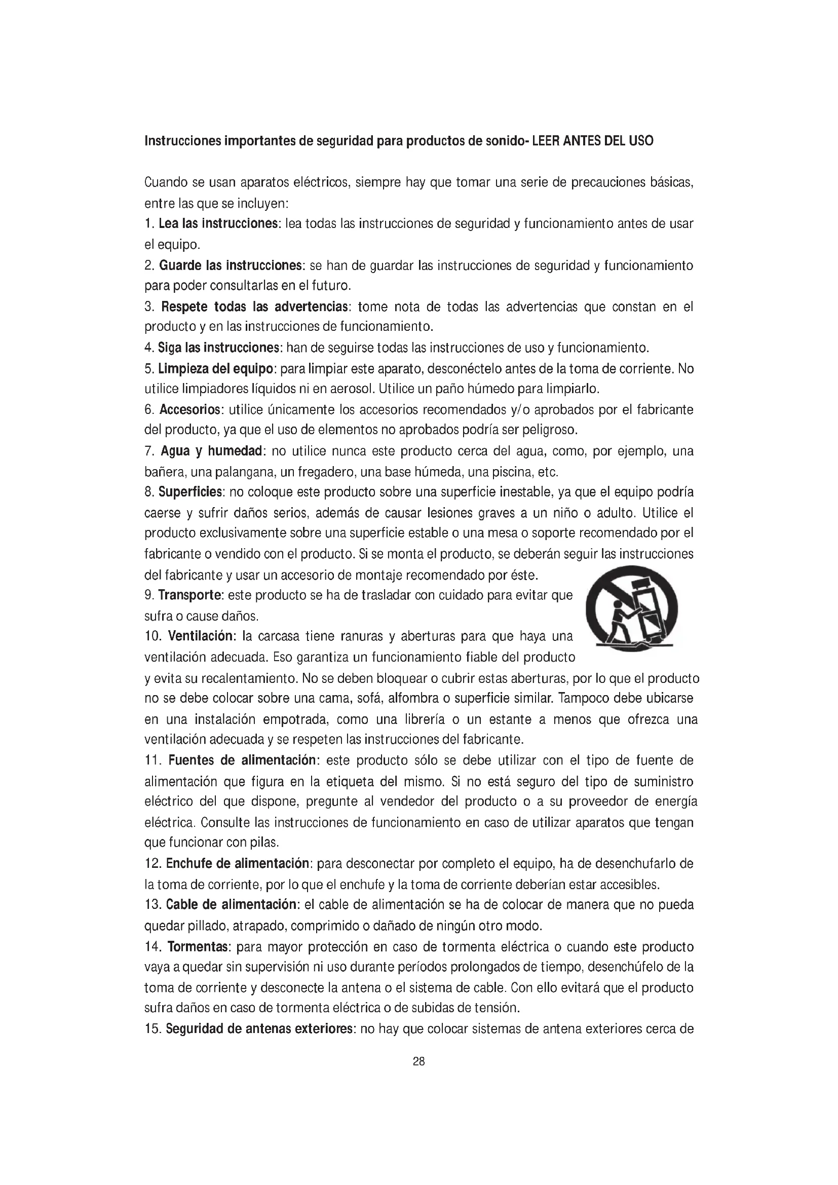 Instrucciones importantes de seguidad para products de sonido- LEER ANTES DEL USO