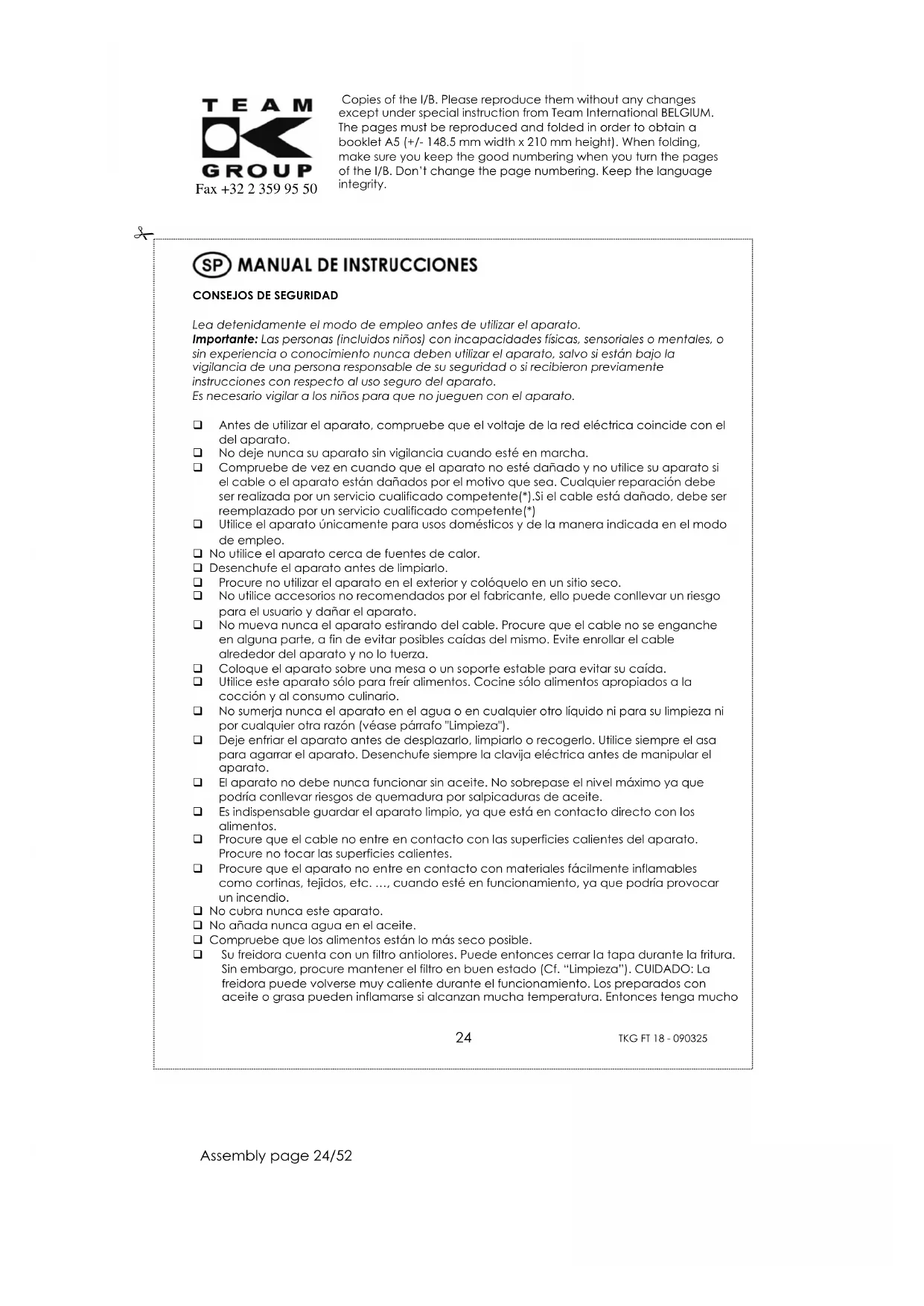 TKG FT 18 - Freidora TEAM - Manual de uso y guía de instrucciones gratis