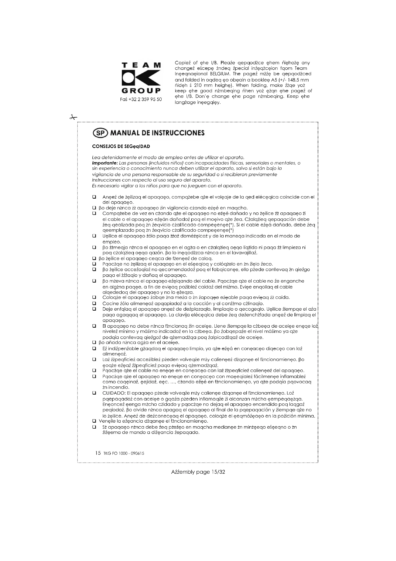 Encuentra gratis el manual del aparato TKG FO 1000 TEAM en formato PDF.
