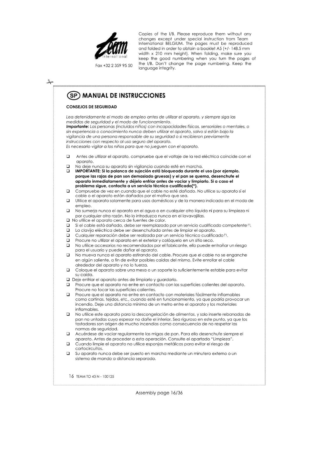 TO 43 - Tostadora TEAM - Manual de uso y guía de instrucciones gratis