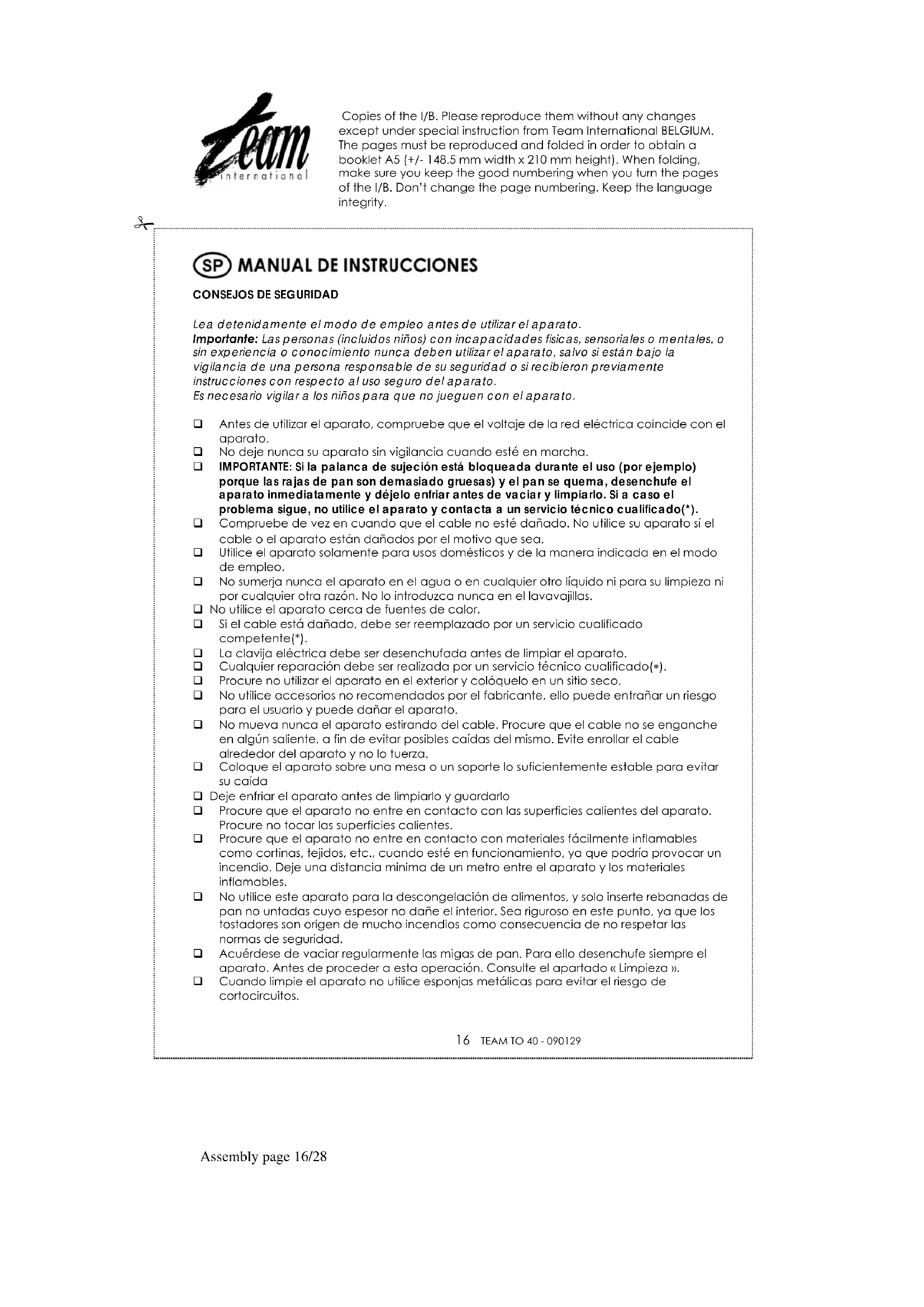 TO 40 - Tostadora TEAM - Manual de uso y guía de instrucciones gratis