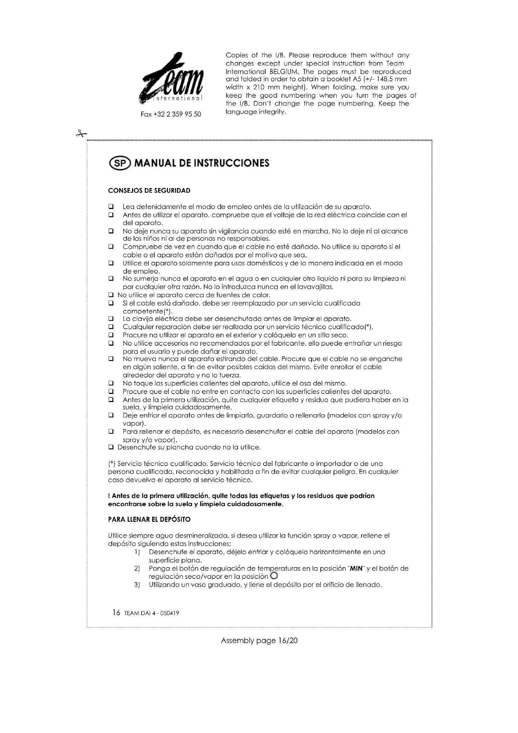 Descarga las instrucciones para tu Hierro en formato PDF gratis! Encuentra tus instrucciones DAI 4 - TEAM y toma tu dispositivo electrónico nuevamente en la mano. En esta página están publicados todos los documentos necesarios para el uso de su dispositivo. DAI 4 de la marca TEAM.