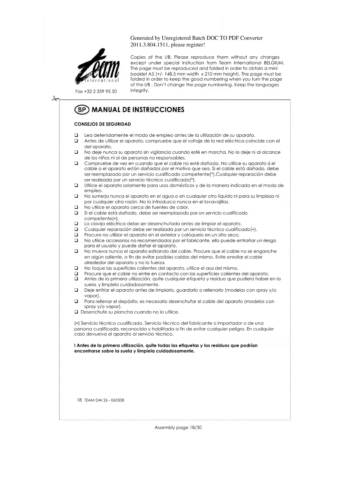 Encuentra gratis el manual del aparato DAI 26 TEAM en formato PDF.