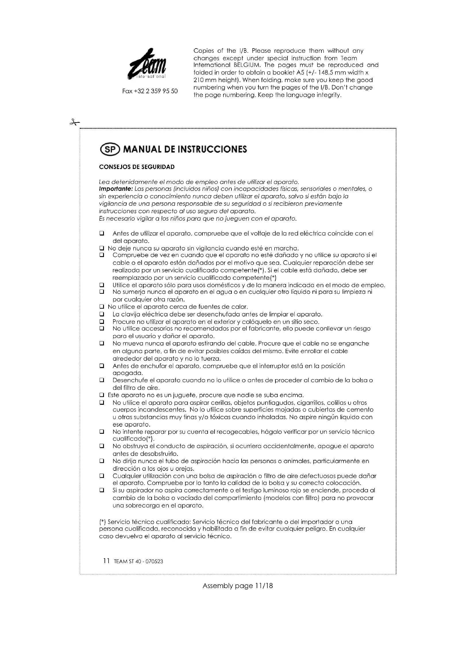 ST 40 - Aspiradora TEAM - Manual de uso y guía de instrucciones gratis