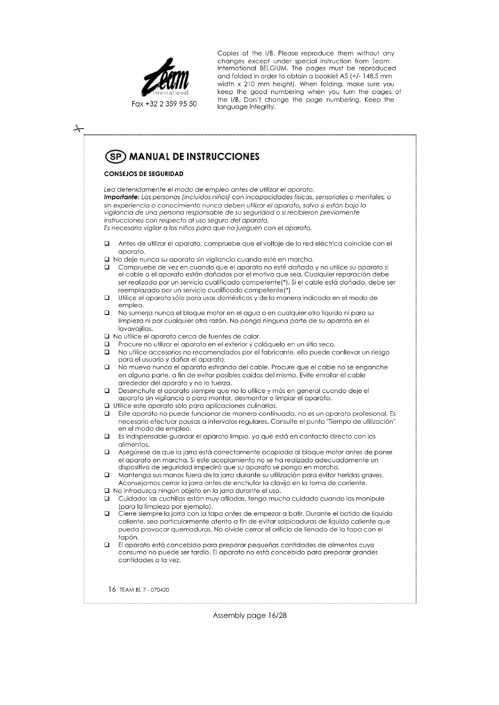 BL 7 - Mezclador TEAM - Manual de uso y guía de instrucciones gratis