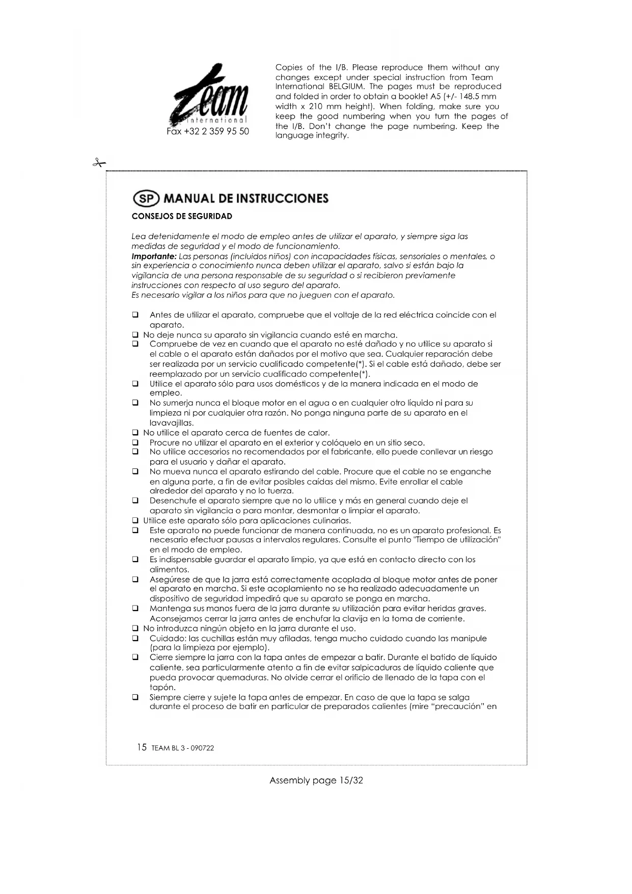 BL 3 S - Mezclador TEAM - Manual de uso y guía de instrucciones gratis