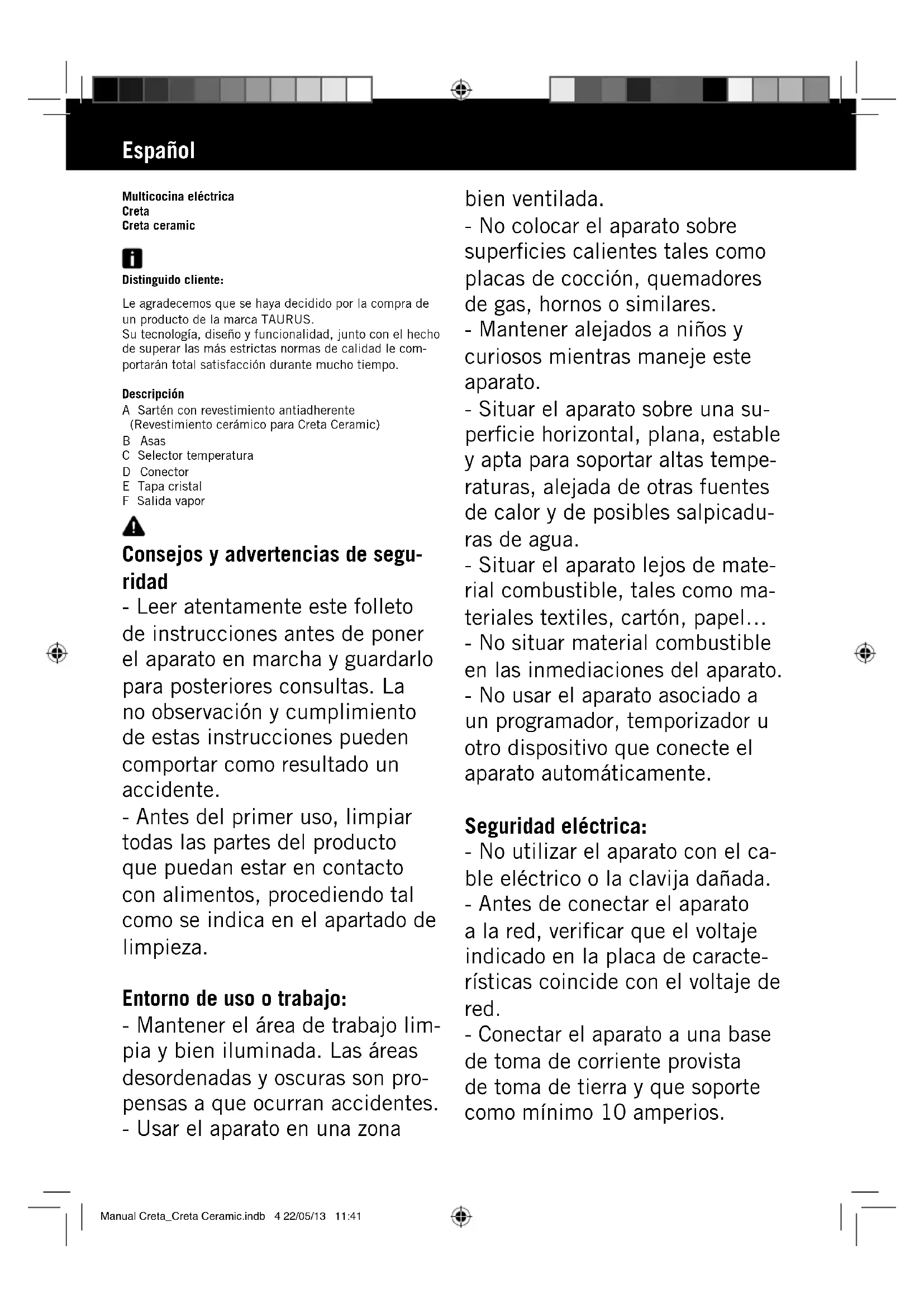 Encuentra gratis el manual del aparato Creta Ceramic TAURUS en formato PDF.