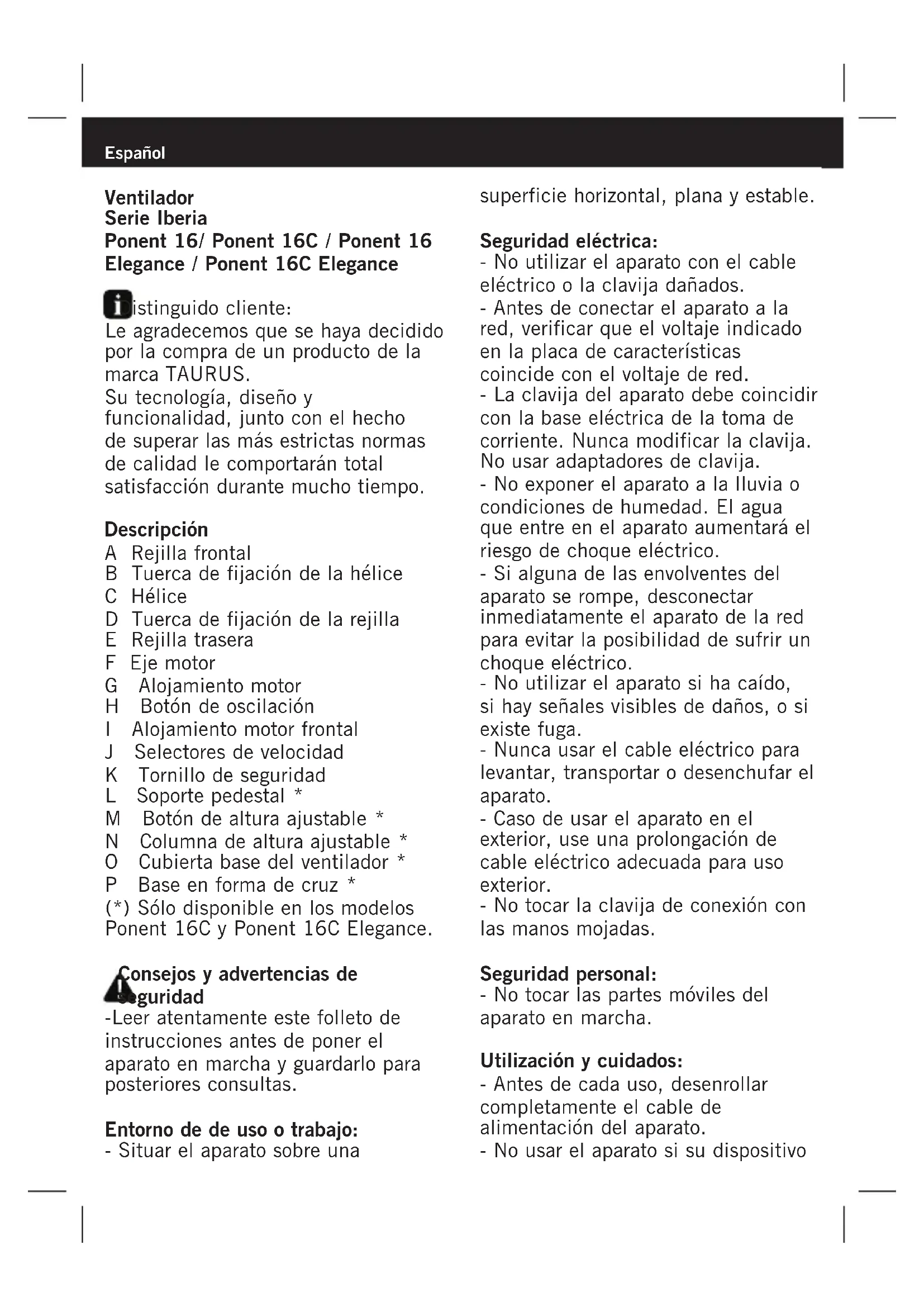 Serie Iberia - Admirador TAURUS - Manual de uso y guía de instrucciones gratis
