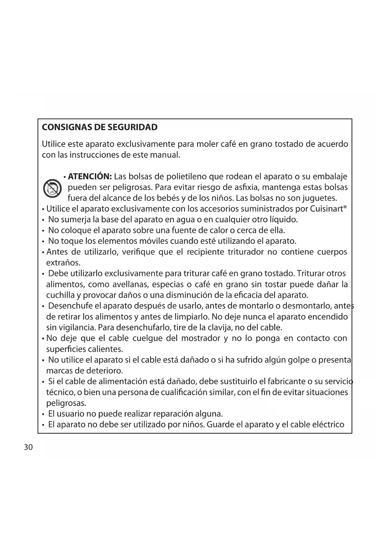 Utilice este aparato exclusivamente para moler café en grano tostado de acuerdo con las instrucciones de este manual.