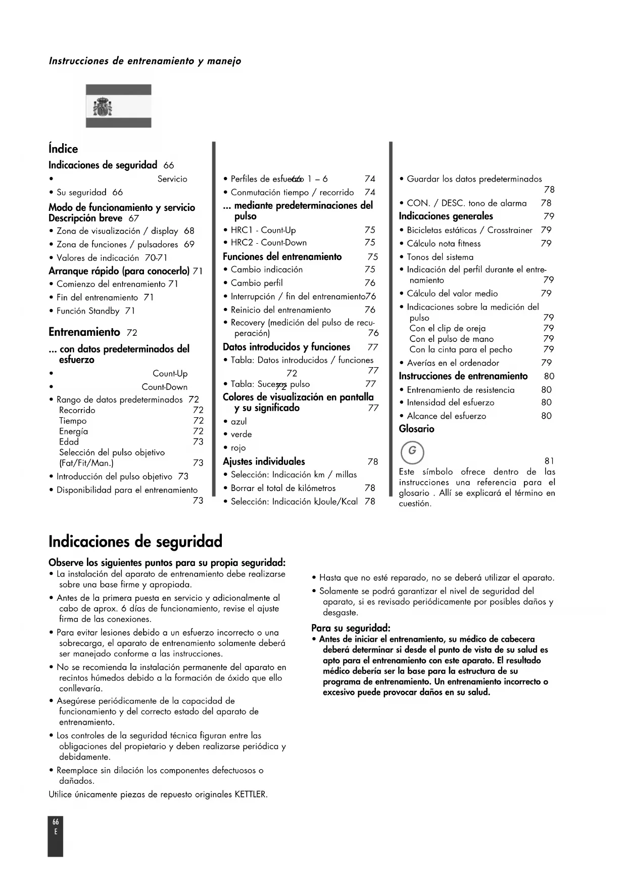 - Comienzo del entrenamiento 71• Fin del entrenamiento 71• Función Standby 71 Entrenamiento 72 ... con datos predeterminados del esfuerzo