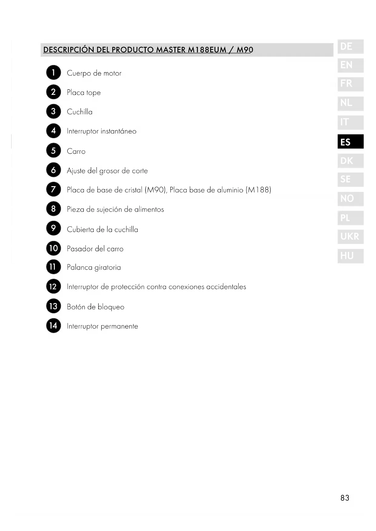 DESCRIPCIÓN DEL PRODUCTO MASTER M188EU / M95