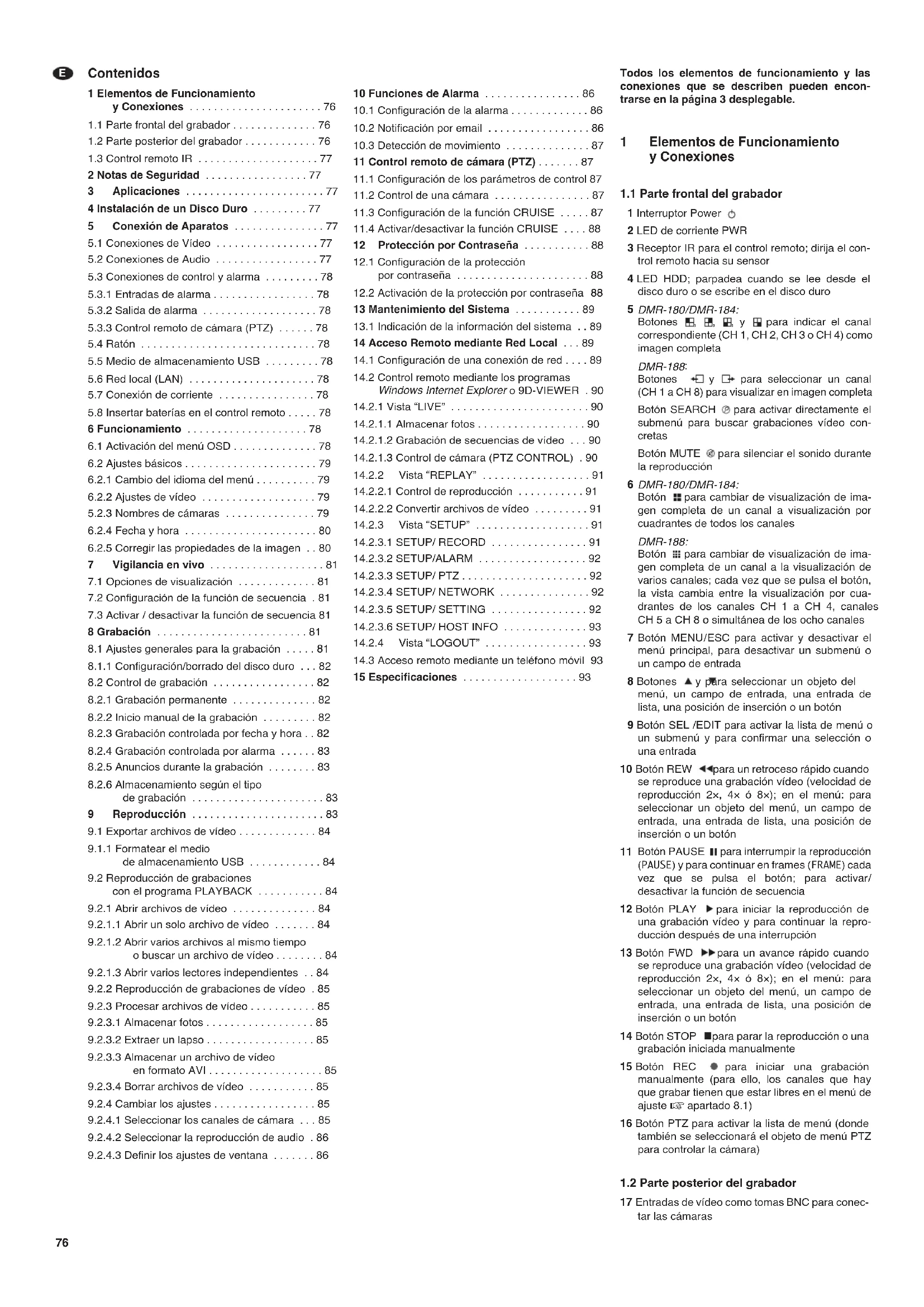 1 Elementos de Funcionamento y Conexiones 76