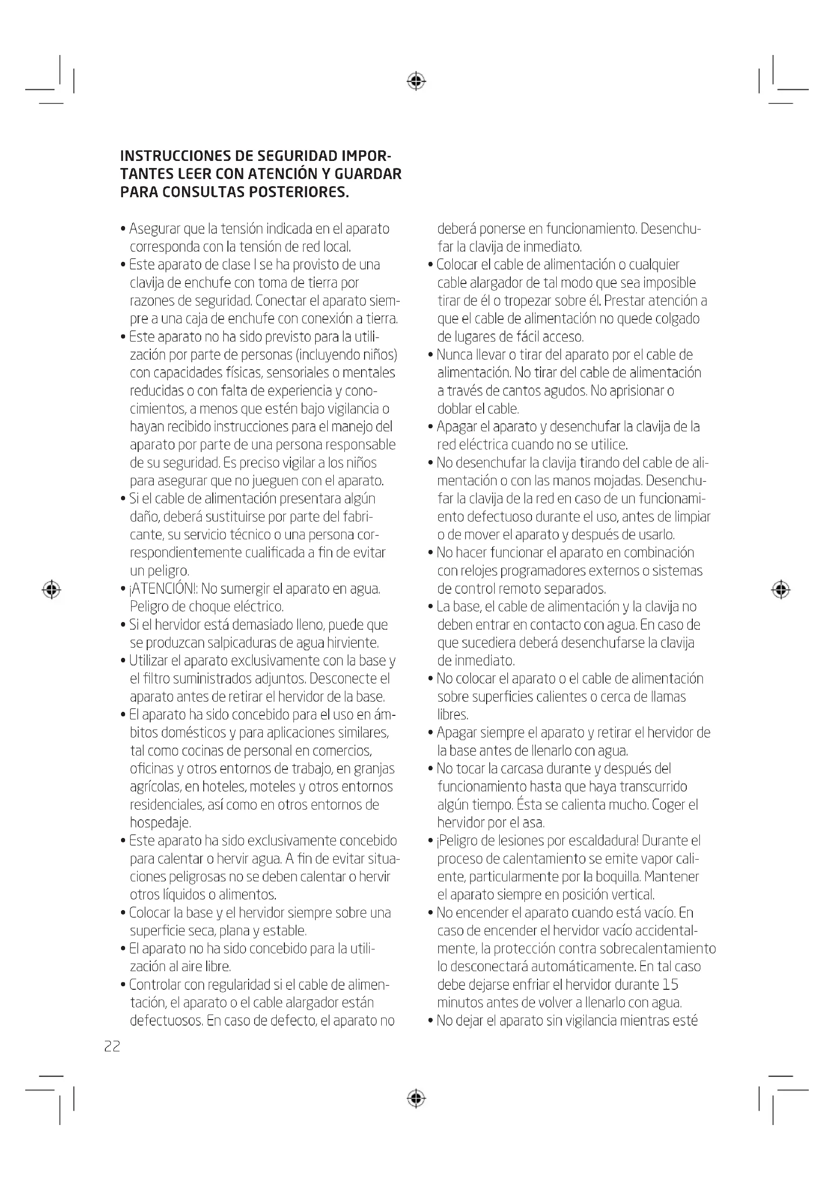 - Este aparato ha sido exclusivamente concebido para calendar o hervir agua. A fin de evaporar situaciones peligrosas no se deben calendar o hervir outros liquidos o alimentos.
