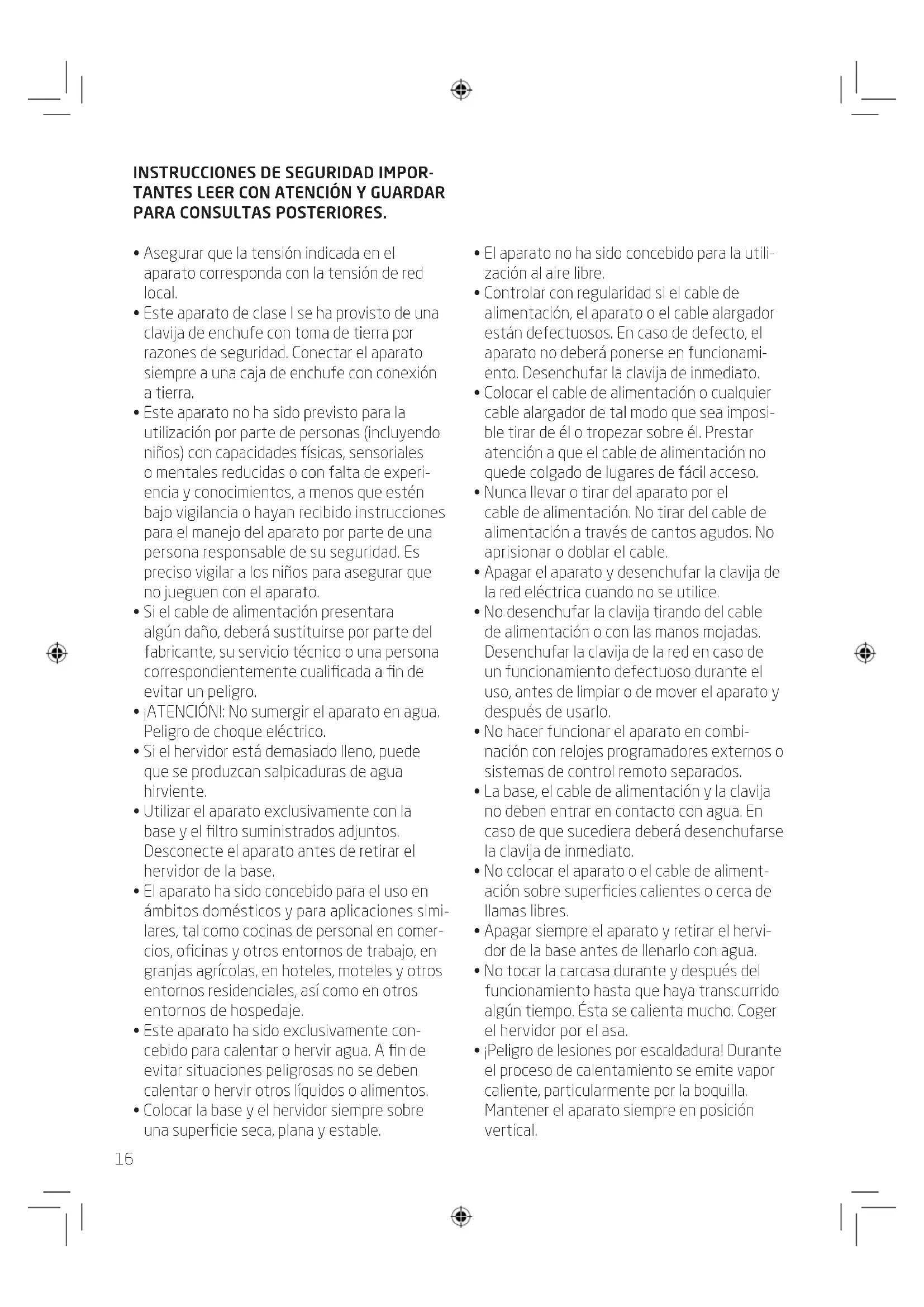 - Este aparato ha sido exclusivamente con- cebido para calentar o hervir agua. A n de evitar situaciones peligrosas no se deben calentar o hervir otros líquidos o alimentos.