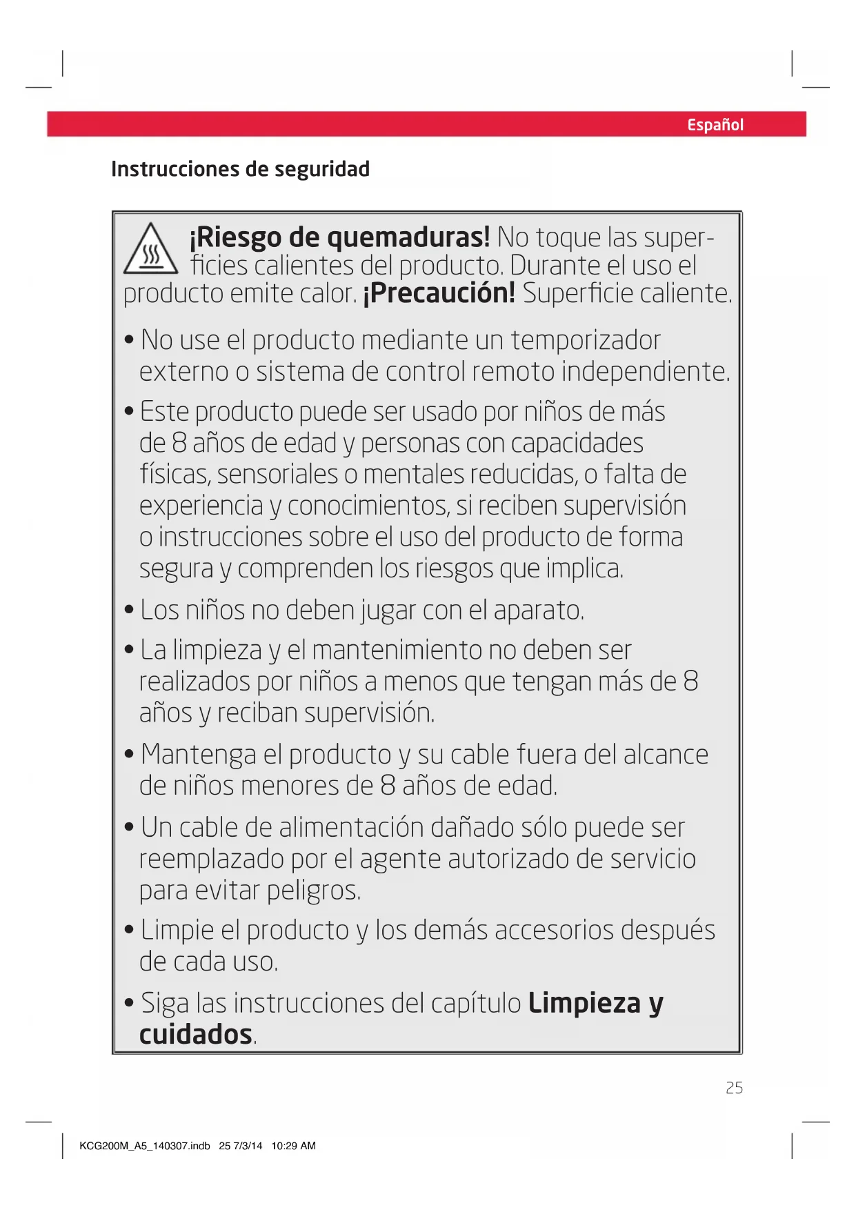 Las planchas y otheras partes del producto se calientan mucho. Deje enfiar bien el producto antes de limpiarlo o guardarlo.