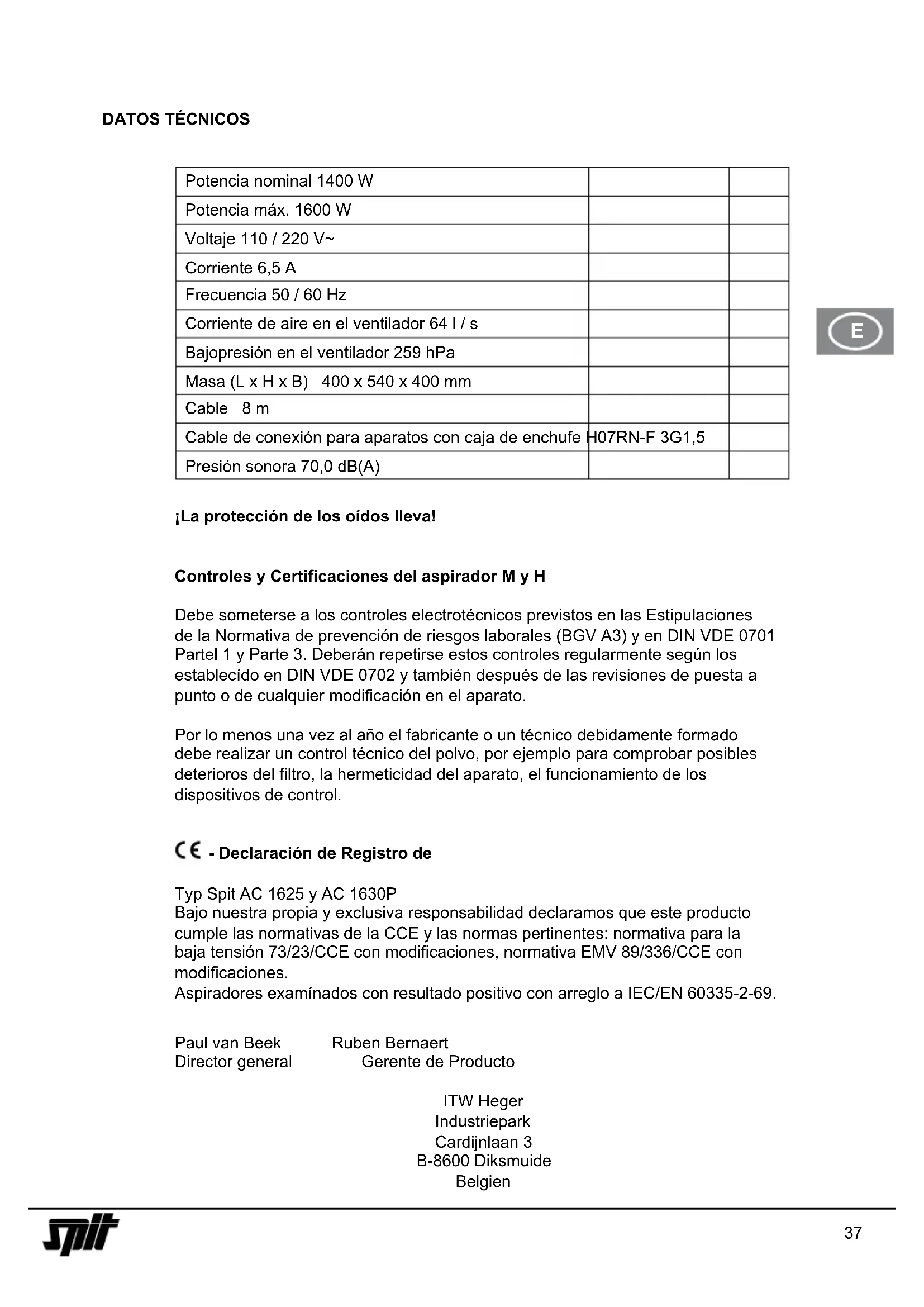 Descarga las instrucciones para tu Aspiradora en formato PDF gratis! Encuentra tus instrucciones AC1625 - Spit y toma tu dispositivo electrónico nuevamente en la mano. En esta página están publicados todos los documentos necesarios para el uso de su dispositivo. AC1625 de la marca Spit.
